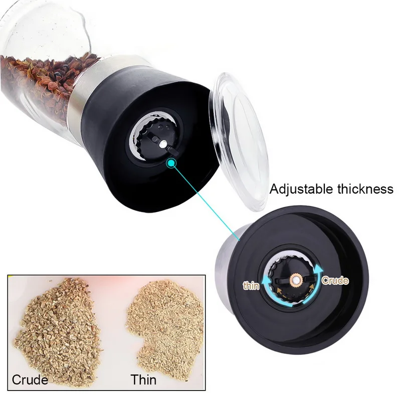-Контейнер-эта перцовая мельница имеет большой и широкий контейнер для специй, большая емкость и четкий дизайн позволяют легко видеть соль и перец.