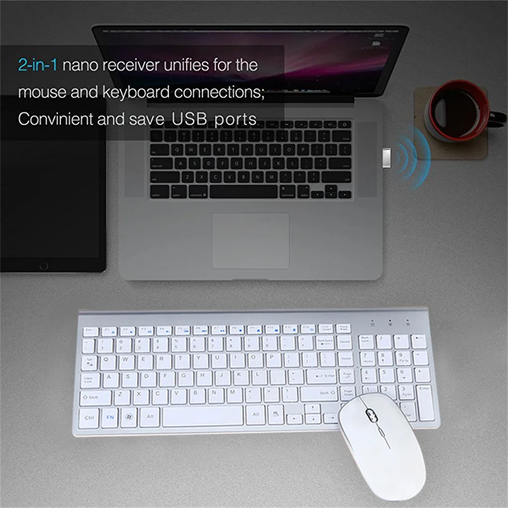 Бесшумная мышь 2,4 GH USB Беспроводная клавиатура Бесшумная мышь набор комбо