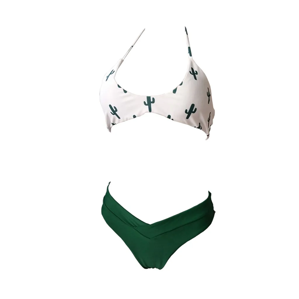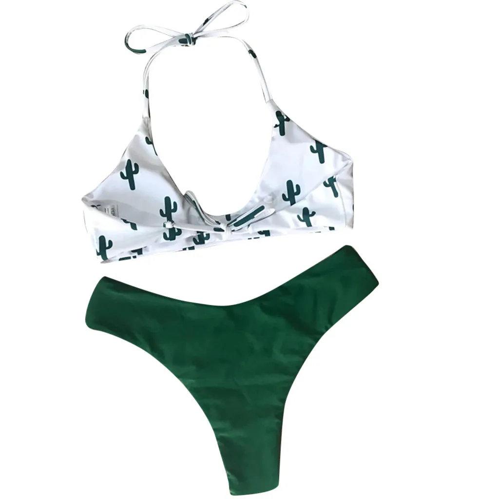 Женский раздельный купальник из двух частей с принтом кактуса, купальник-бикини, пляжная одежда