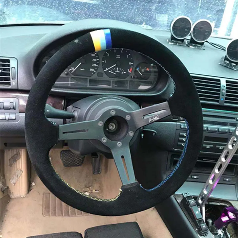 Этот руль 14 дюймов-новый дизайн, он изготовлен из замшевой кожи.