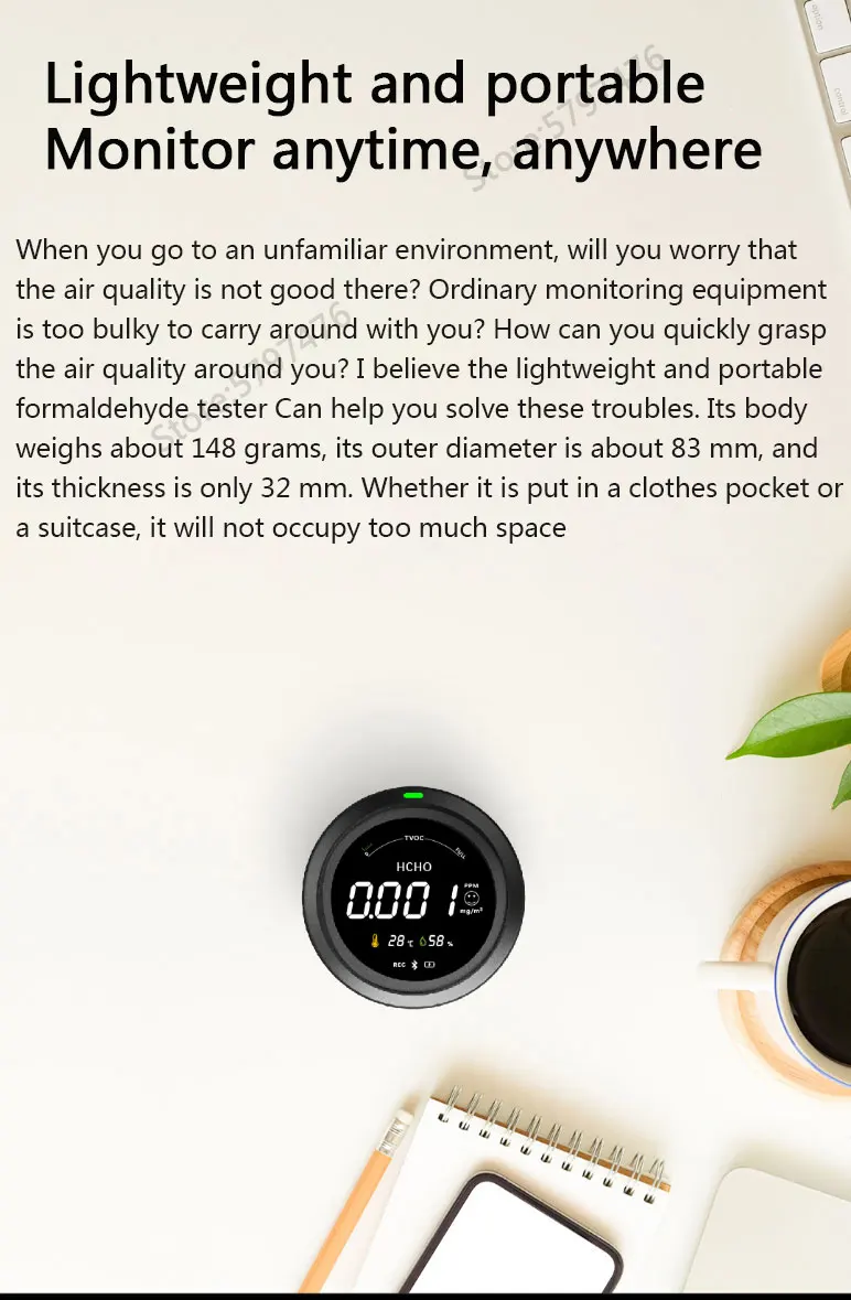 Youpin детектор воздуха монитор формальдегида Электрический гигрометр термометр для умного дома Mijia App детектор качества воздуха Параметры продукта Размер изделия: (наружный диаметр) 83 мм, (толщина) 32 мм Тип батареи: литий-ионный полимерный аккумулятор Емкость аккумулятора (типичное значение): 2400mA Беспроводное подключение: Bluetooth 4,2 Рабочая температура и влажность: 0 °C ~ 40 °C/20% ~ 80% RH CMII ID: 2019DP10532 Формальдегид (фракция): 0,001 мг/м3 Измерение температуры (диапазон): 10 °C-40 °C (+-1 °C) Измерение влажности (диапазон): 20 ~ 80% (+-5%) относительной влажности Входной параметр: 5 В = 1 А Упаковочный лист: Упаковочная коробка * 1 Узел PTH * 1 Автомобильное крепление * 1 Руководство * 1 USB кабель * 1 Ремешок * 1 параметры продукта