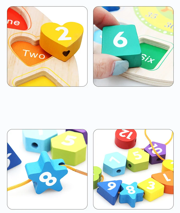 Детская головоломка для раннего обучения деревянные цифровые животные веревка бисером игра творческие часы строительные блоки цифровые геометрические игрушки