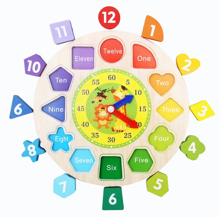 2. Разные цифры соответствуют различным предметам, каждая деталь является независимой пластиной, ребенок в соответствии с его формой, номером и цветом будет помещен в соответствующее положение, узнать цифры, распознать часы.