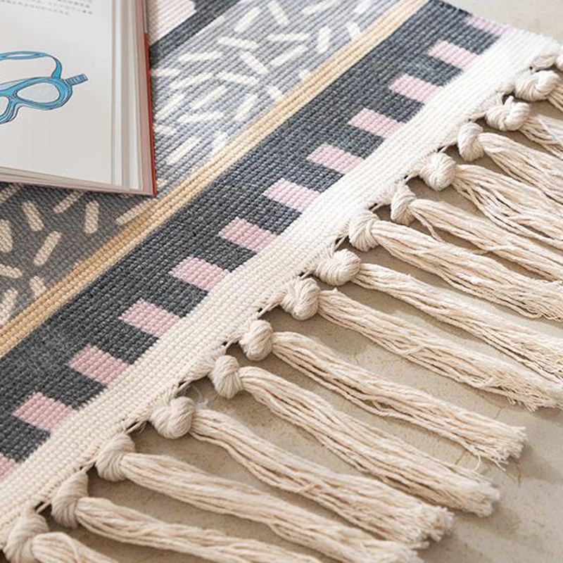 Big Size Geometric Carpet Cotton Area Rug Yoya Mattress Doormat with Tassels Aubusson Study Living Room Decor Child Kids Mat