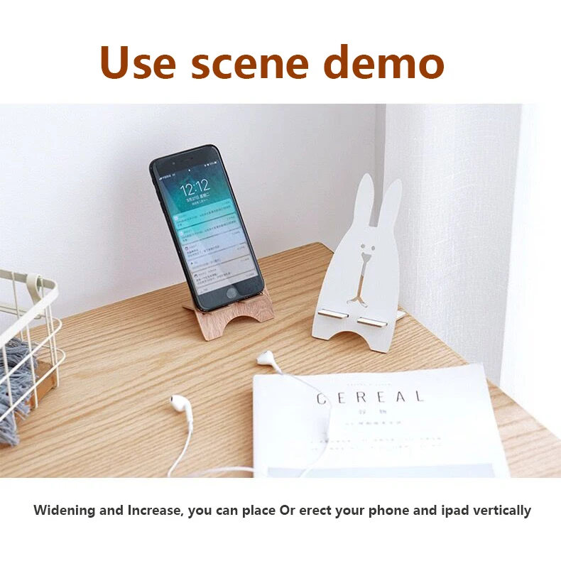 Универсальный Настольный держатель для мобильного телефона деревянная подставка для рабочего стола для Ipad Samsung iPhone X XS Max мобильный телефон держатель крепление Примечания: эта подставка с милым кроликом может поддерживать планшеты и мобильные телефоны, вы можете смотреть телевизор во время еды или проверять сообщения мобильных телефонов во время работы, что очень удобно и применимо ~