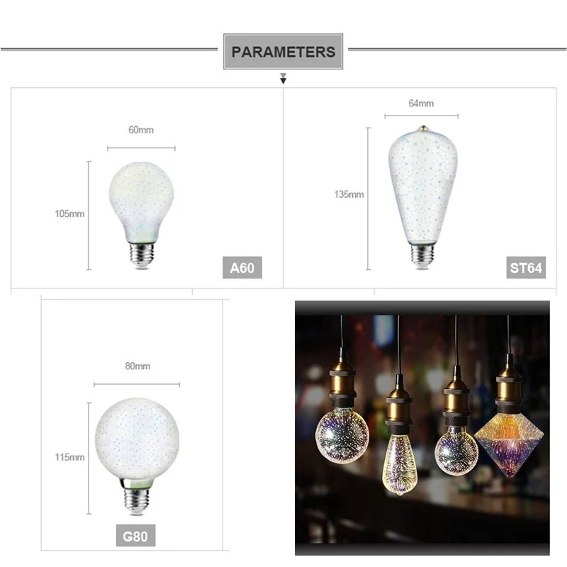 Особенности: Эта лампа накаливания с углом луча 360 ° может светильник ить ваш дом, чтобы дать вам фантастический 3d-опыт. Лампа со средним винтовым цоколем E26. Просто установите эту непосредственно в средний резьбовой цоколь светильник приспособления. В 3D специальные лампы могут создать сладкий и романтическая атмосфера, создавать красочные фейерверки светильник с 3D эффект идеально подходит для украшения дома, бар, кафе, booktstore, вечерние, свадебные, магазин орнамент и т. д Низкое тепловыделение и энергопотребление, 20 лет (30000 часов, 3 часа в день) Спецификация: Тип: 3d-лампа в виде фейерверка Материал абажура: стекло Держатель лампы: E27 Цвет оттенка: серебристый Входное напряжение: 85-265 В переменного тока Мощность: 5 Вт Мощность: 0,2 Вт Напряжение: 3,2 в Эффективный срок службы: 30000 часов Посылка: 1 Светодиодная лампа (держатель лампы в комплект не входит)