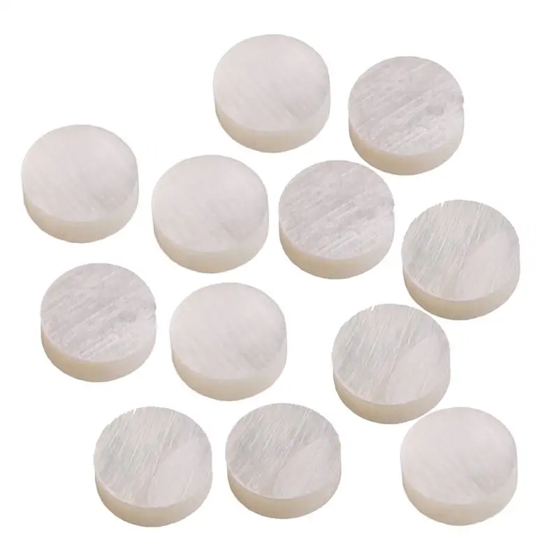 Данная позиция включает в себя 12 жемчужно-белый горошек, которые подходят для инкрустация, маркеры для гитарных ладов, ремонт Коробки или ювелирных изделий. Куски все примерно 1,3 мм толщиной.