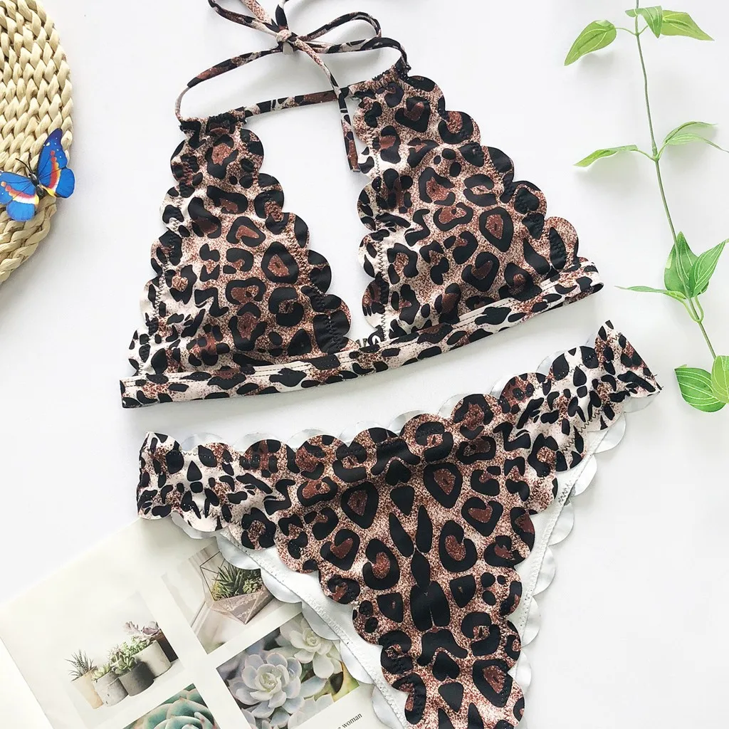 Новинка Бикини с леопардовым принтом, женский сексуальный купальник с лямкой через шею, 2020, летний коричневый купальник пуш-ап, пляжная одежда # F5