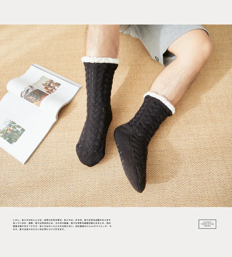 Мягкие эластичные зимние теплые черные носки-тапочки, Нескользящие мужские длинные толстые хлопковые носки для мужчин