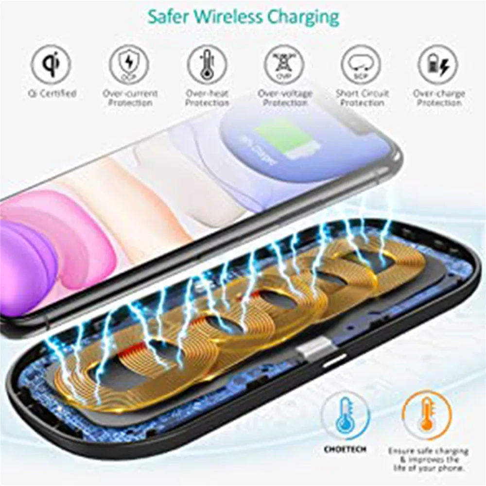 Беспроводное зарядное устройство CHOETECH Qi для iPhone SE 2020/11 Pro Max/XS для Galaxy S20/Note10/S10 для AirPods Pro