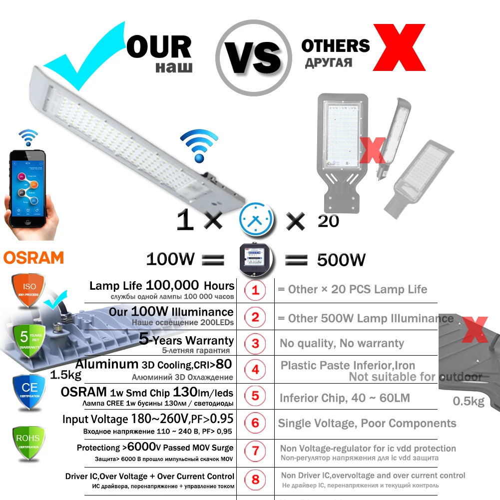 Причины качества продукта (бесплатная замена и доставка) 50 Вт-7000лм, 60 светодиодов, 1 Вт SMD, США CREE или Германия Osram чип, Рекомендуем: 3-7 м, 30-60 квадратных метров 100 Вт-15000лм, 120 светодиодов, 1 Вт SMD, США CREE или Германия Osram чип, Рекомендуем: 5-8 м, 50-120 квадратных метров