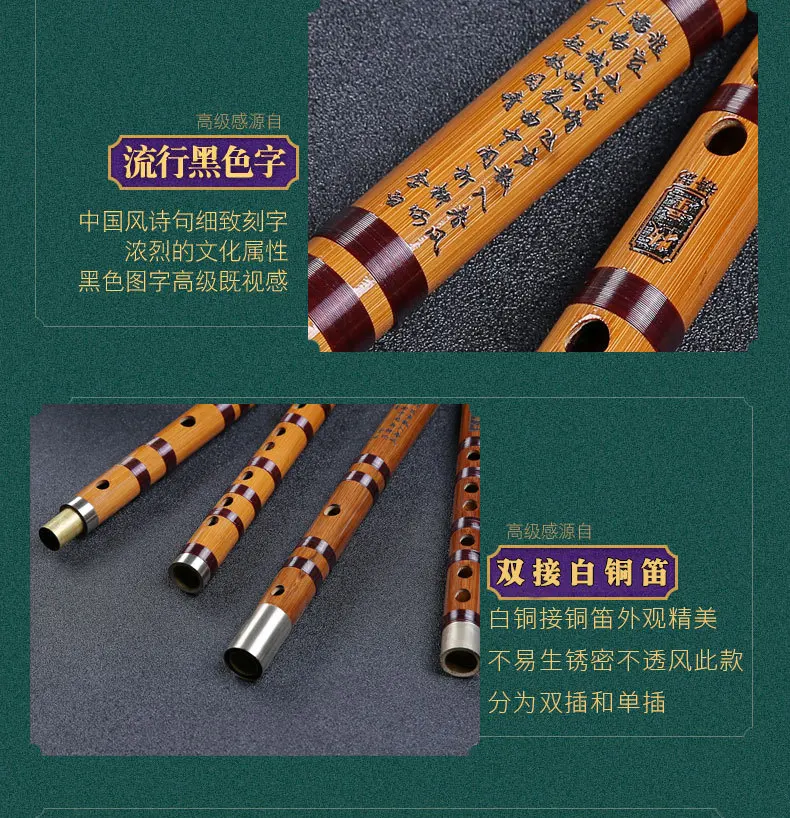 Характеристики: 2 секции флейты с латунные соединительные муфты, легко носить с собой. Прежде чем играть, вы должны связать их друг с другом.