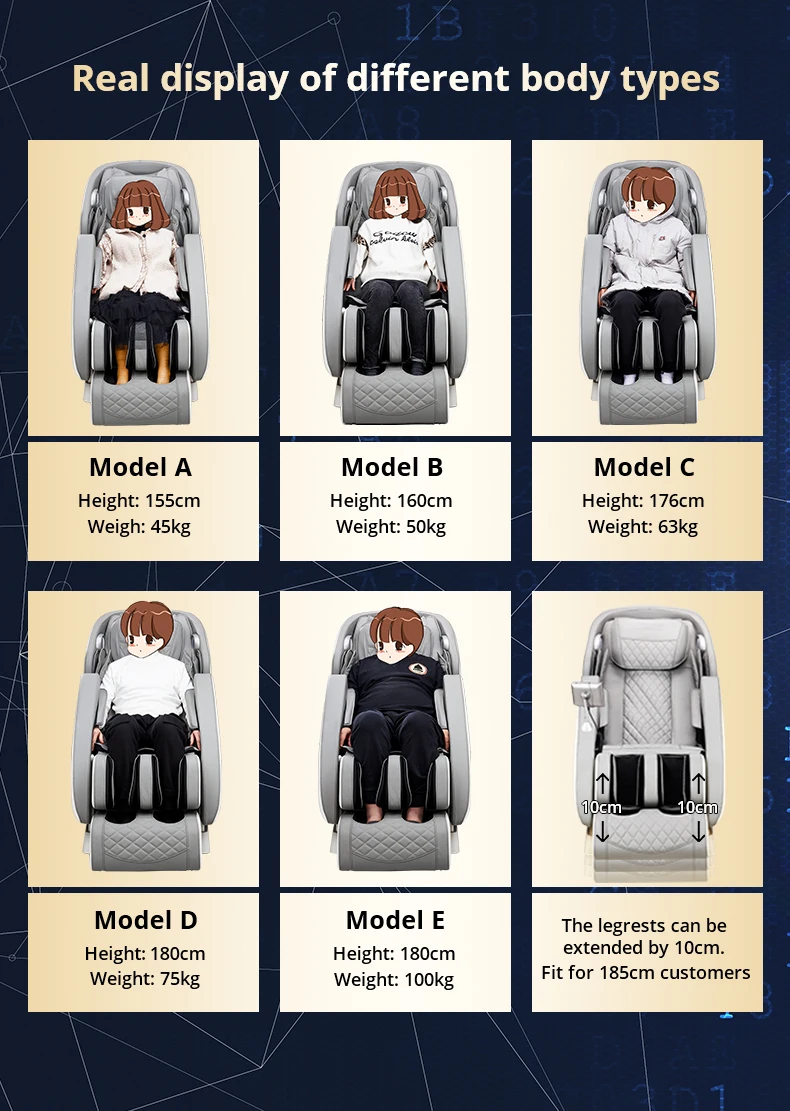 * Шея, руки, спина, ягодицы, ноги не подходят для людей ростом более 180 см