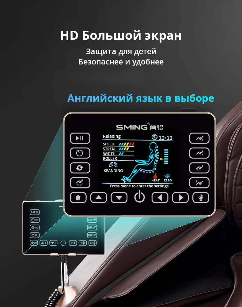 * Функция: местная гипертермия, регулировка интенсивности подушки безопасности, регулировка скорости ролика, регулировка интенсивности массажа