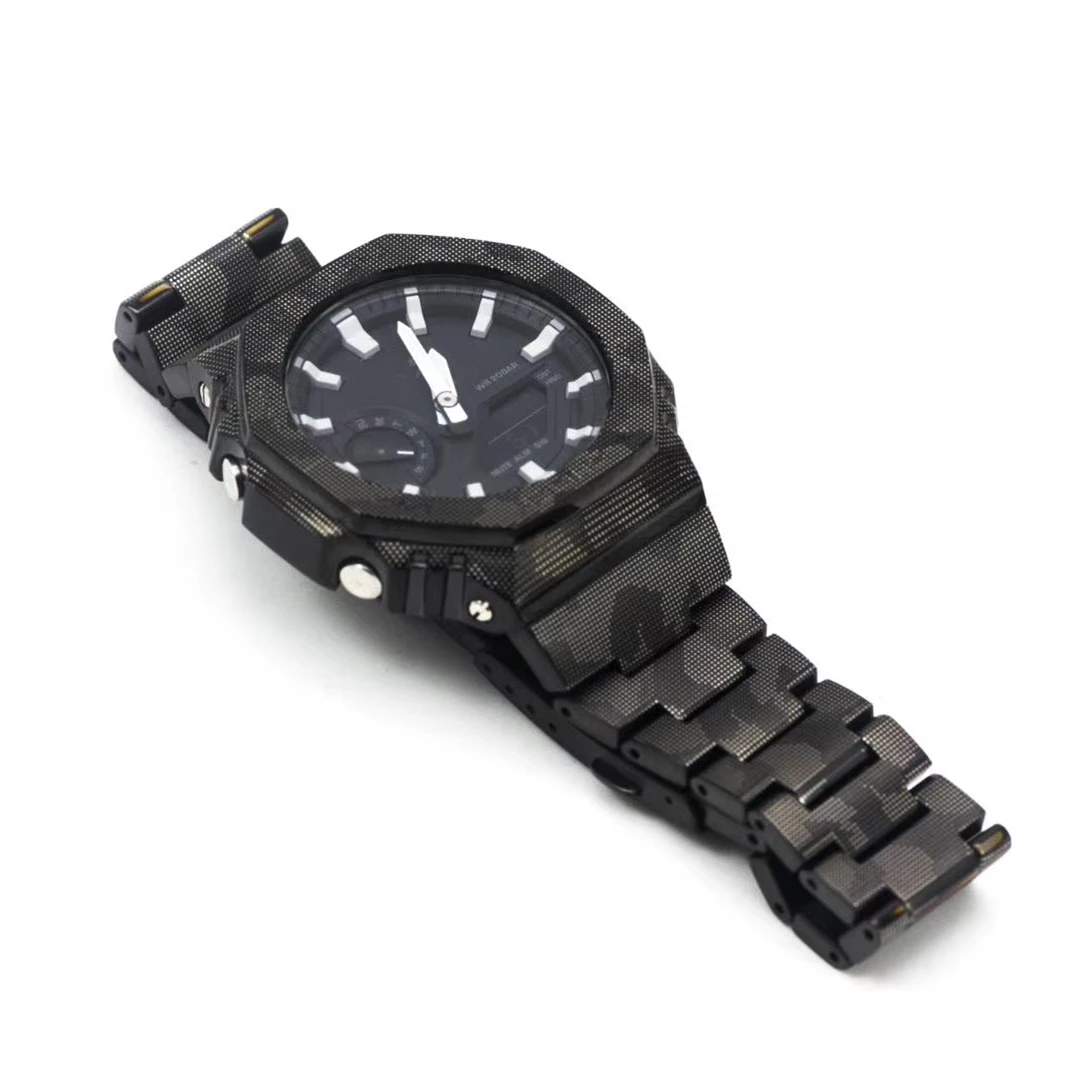 Название продукта: GA-2100 ремешок для часов и рамка модификации камуфляж 316L Нержавеющая сталь Цвет: камуфляжные футболки в мозаичном стиле Материал: металл 316, нержавеющая сталь Страны/регионы производства: Китай Размер Fot: GA-2100 Примечание: (посылка не включает часы) Посылка набора включает в себя: 1 ремешок для часов, 1 БЕЗЕЛЬ для часов, инструменты и Секретные материалы Посылка для часов включает в себя: 1 ремешок для часов, пружинные стержни, инструменты Посылка с безелем включает в себя: 1 Безель часов + Инструменты + секретные элементы