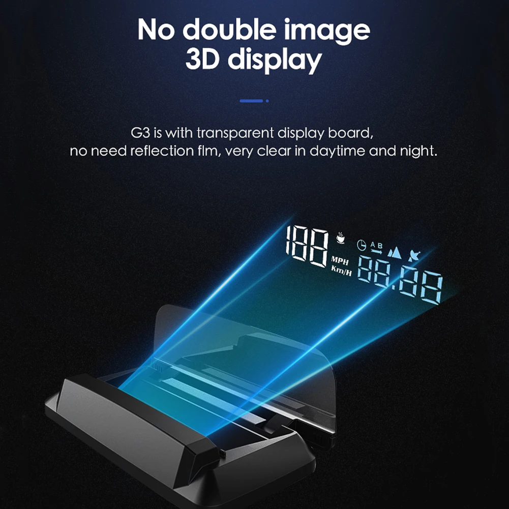 * Глубина визуального эффекта поля-G3 HUD использует полупрозрачные и полуотражающие линзы для стереоскопического отображения информации в воздухе. В отличие от ветрового стекла, вы всегда можете увидеть четкое и четкое изображение на дисплее, никогда не привидение/двойное изображение.