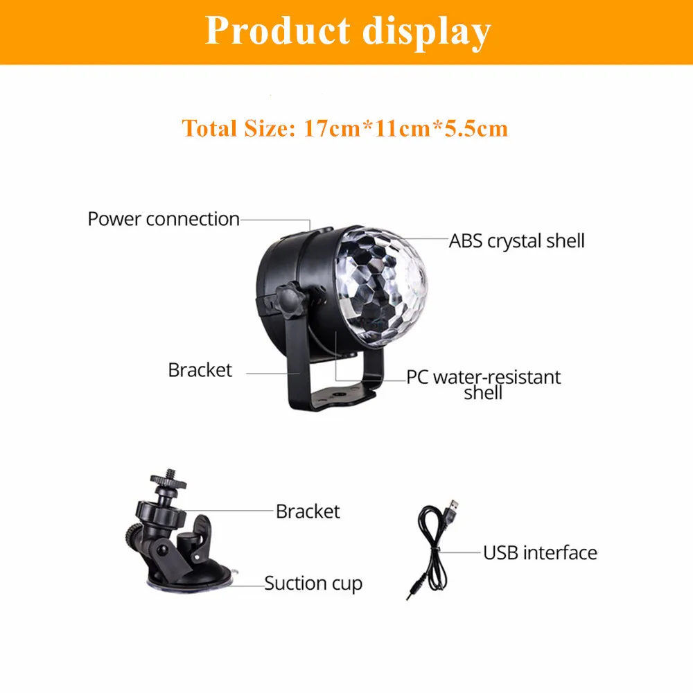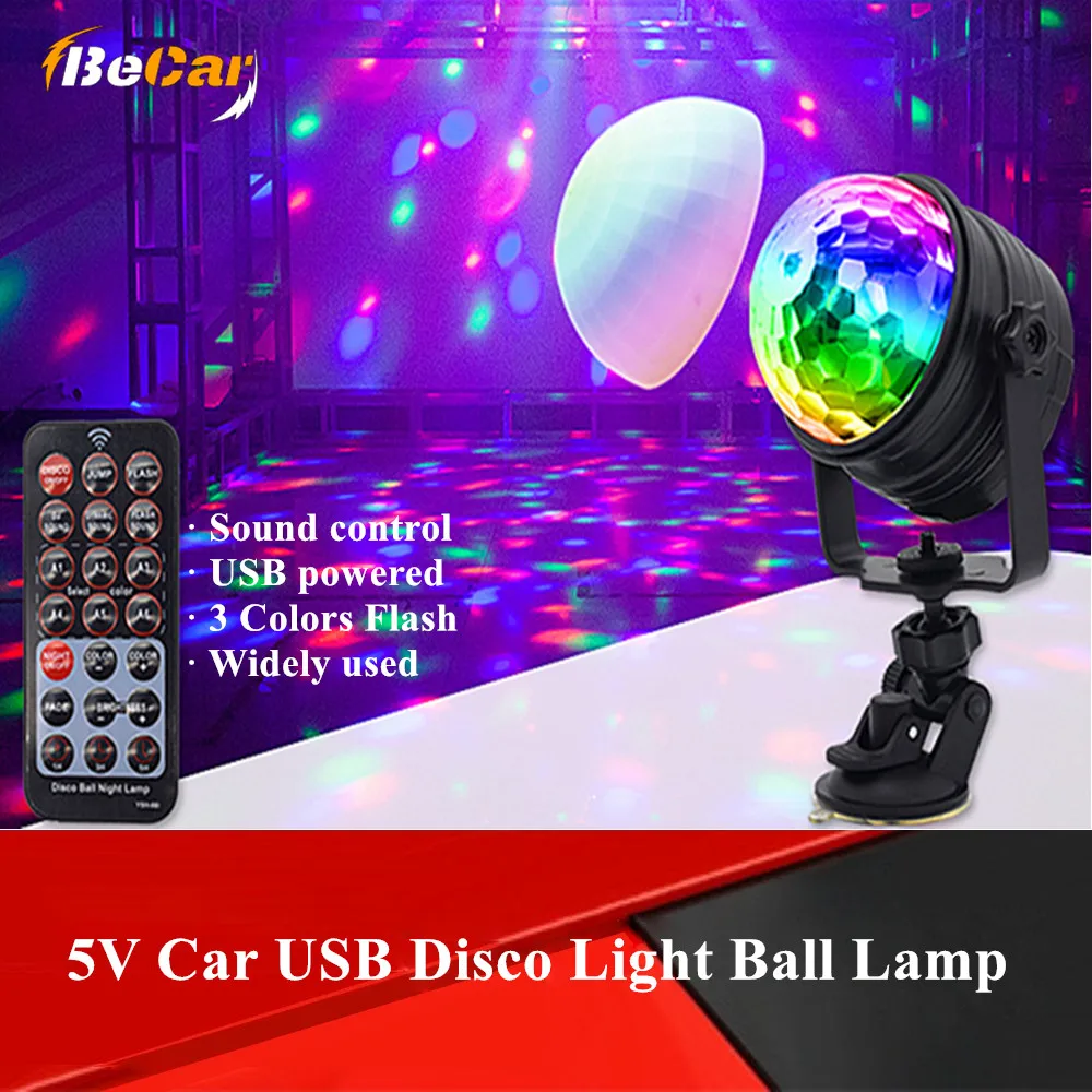 5 в Автомобильный USB светильник со звуковым управлением, диско-светильник, шариковый светильник для автомобиля, атмосферная лампа для дома, свадьбы, для улицы, вечерние, DJ, сценический светильник, проектор, дистанционное управление