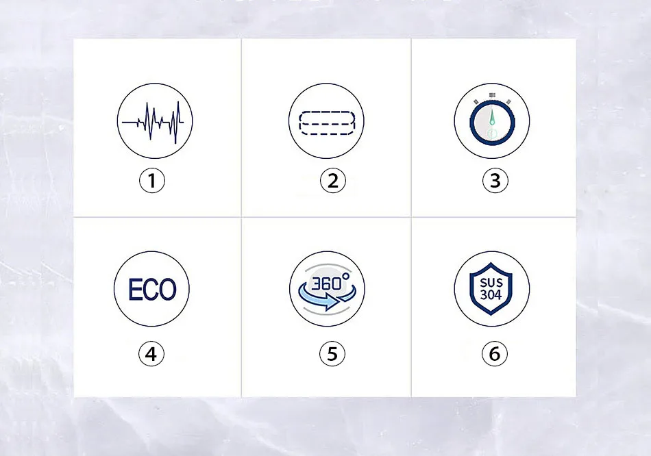 1. Ультразвуковая чистка 2. Легко носить с собой 3. Регулярная очистка 4. Энергосбережение 5. Всесторонняя Чистка 6. 304 материал из нержавеющей стали