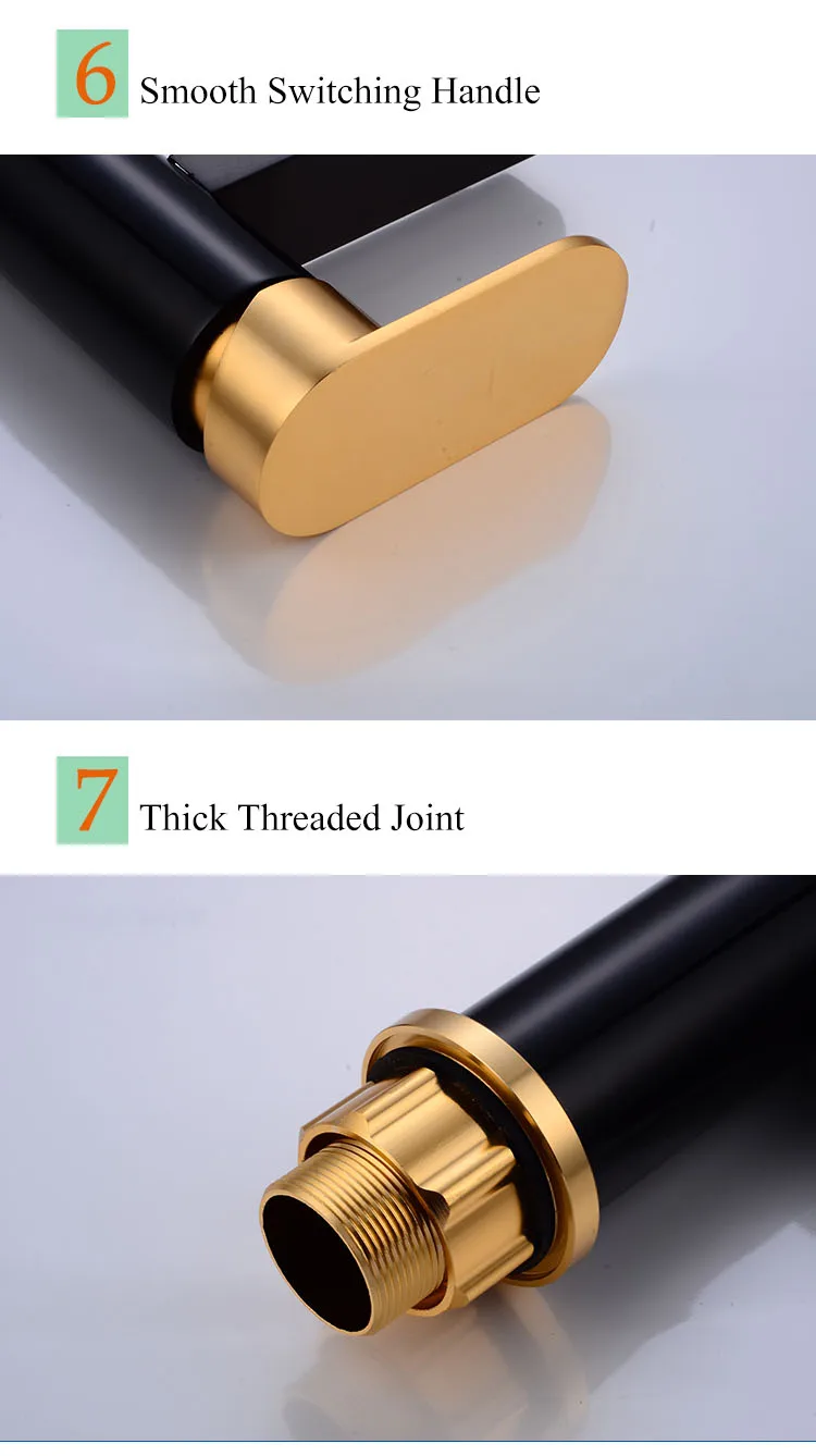 Кран для раковины Torneira Misturador Banheiro, черный и золотой цвет, кран для горячей и холодной воды, смеситель для ванной комнаты, кран для кухни, краны для раковины, краны для умывальника