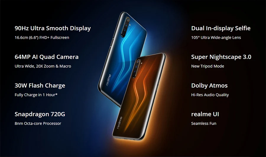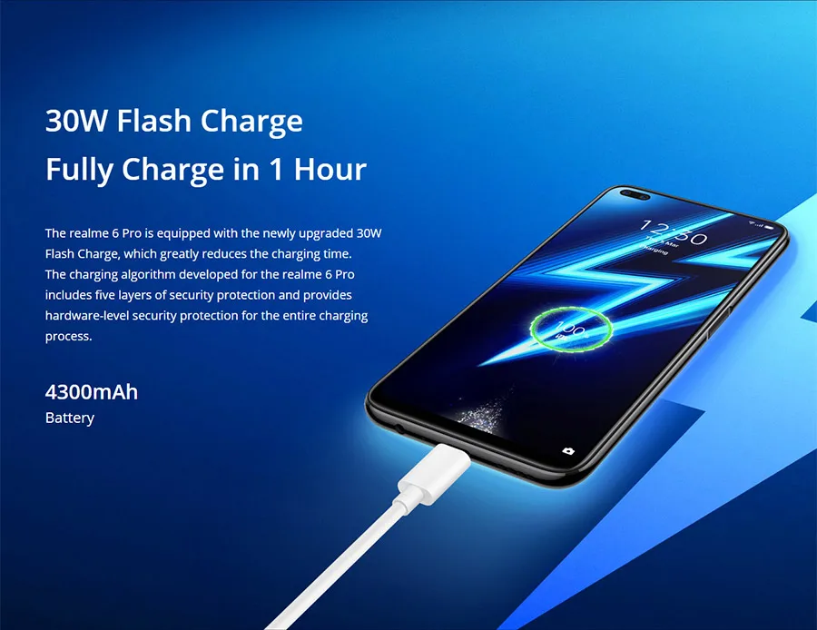 Телефон realme 6 Pro 1 Usb-кабель Type-c 1 30 Вт зарядное устройство 1 Сим-карта с набором инструментов-1 шт. Защитный чехол-1 шт. Гарантийный талон-1 шт.