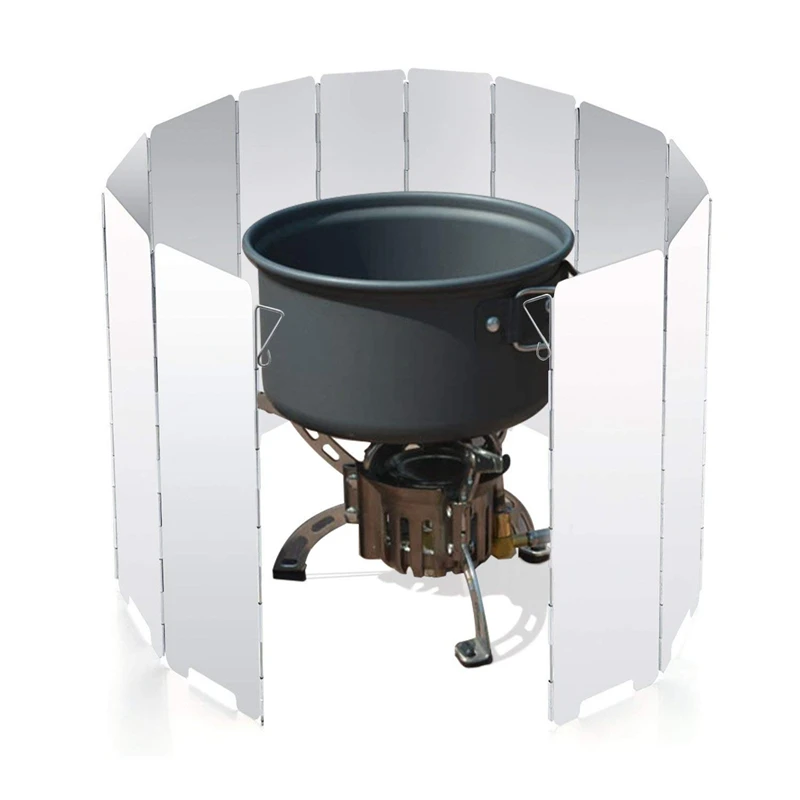 Лобовое стекло печи для кемпинга со встроенными выдвижными колышками для обеспечения защиты от ветра в землю для стабильности. Помогает уменьшить ветер, уменьшить расход топлива, повысить эффективность использования тепла