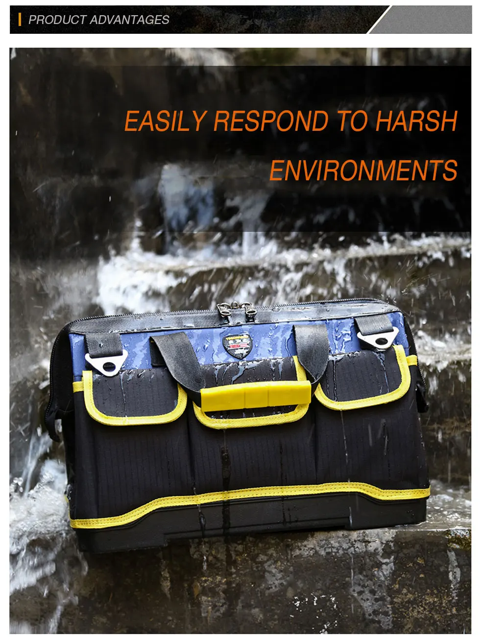 1. Ткань Оксфорд высокой плотности 1680D износостойкая, устойчивая к царапинам, износостойкая, водонепроницаемое покрытие, не боится длительного срока службы воды