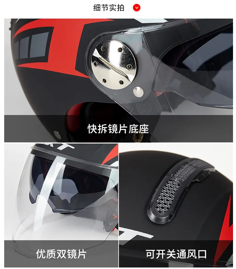 Наименование товара:Двойные линзы мотоциклетные шлемы, половина лица ABS мотоциклетный шлемЦвет: белый, черный, синий, красныйИспользование для: Mortorcycle, ЕздаПосылка включает:1 * мотоциклетный шлем