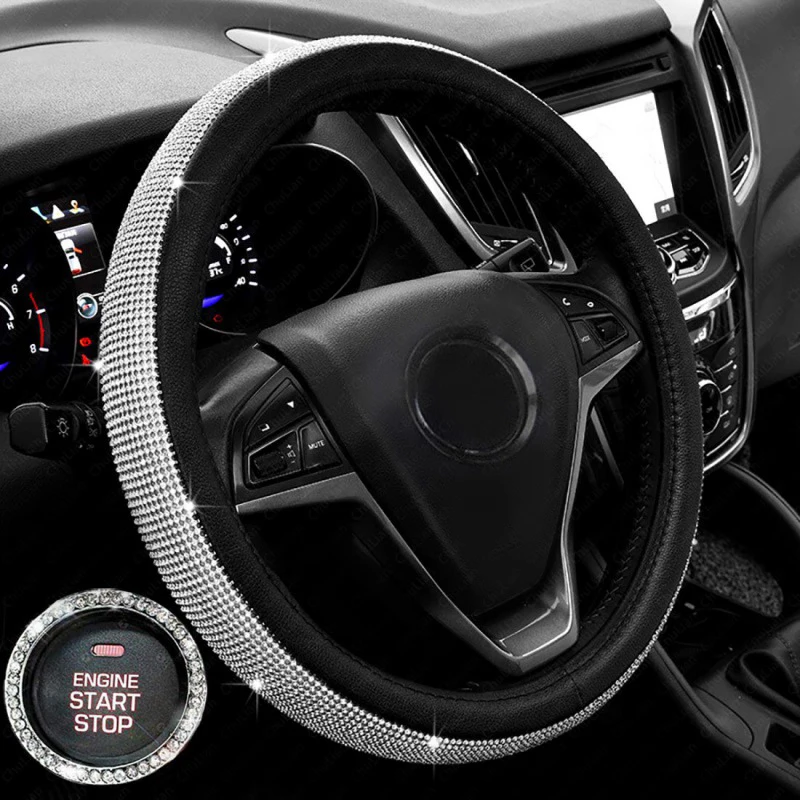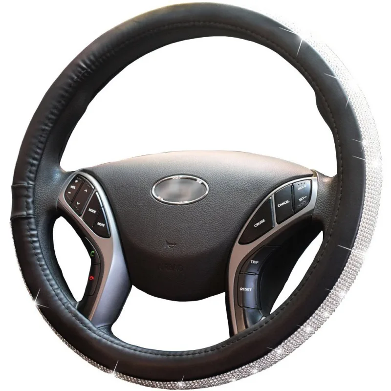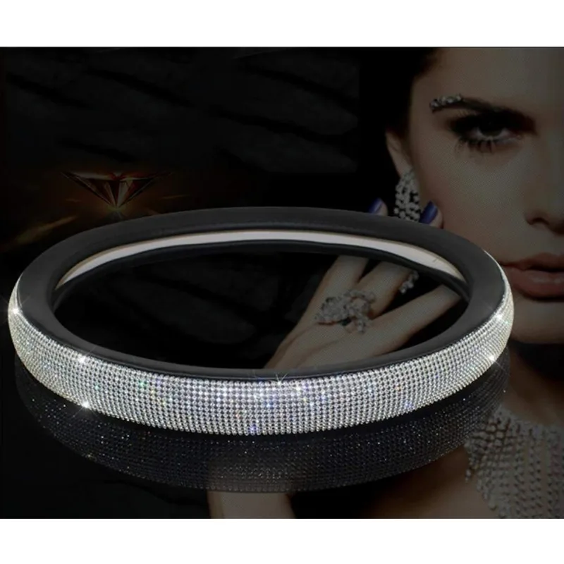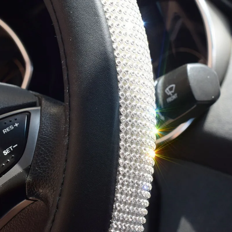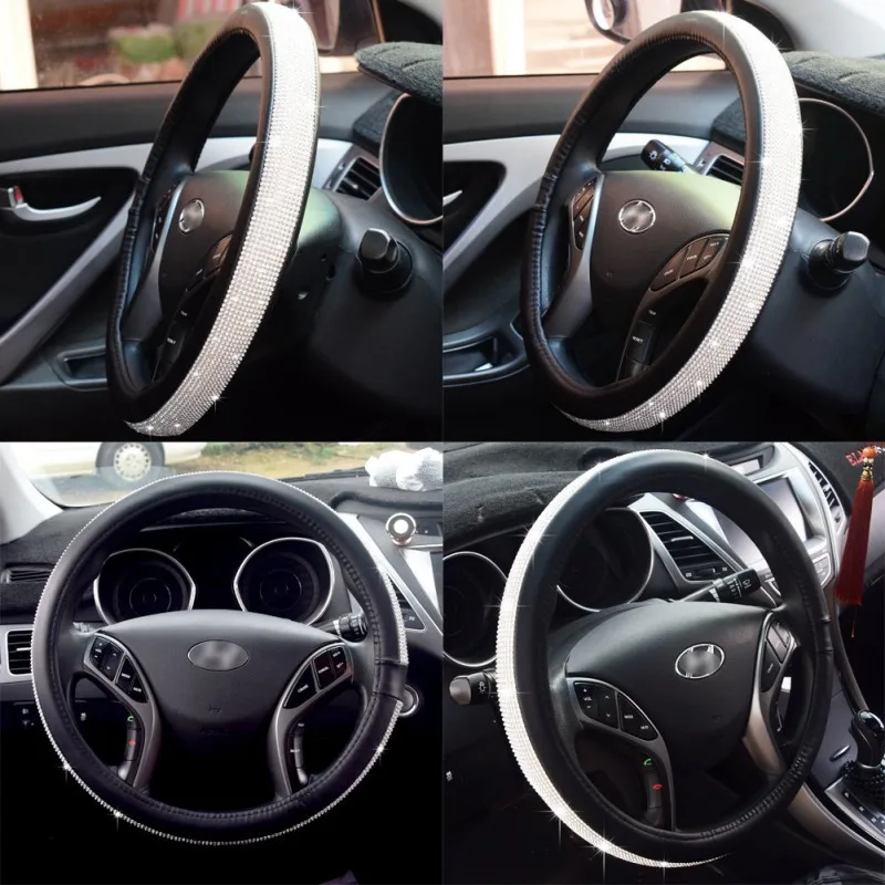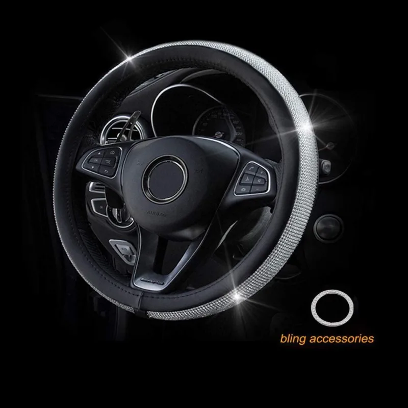 2. Модный очаровательный дизайн алмазной крышки рулевого колеса, блестящий под светильник: сверкающий через лобовое стекло и сияющий ваш автомобиль.