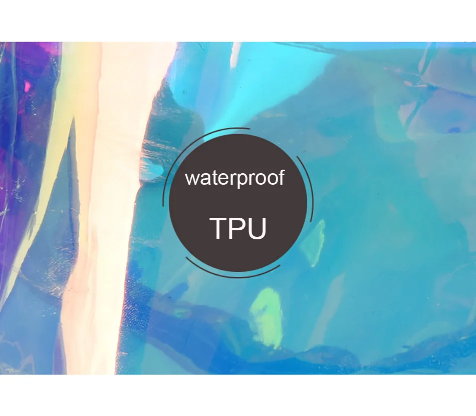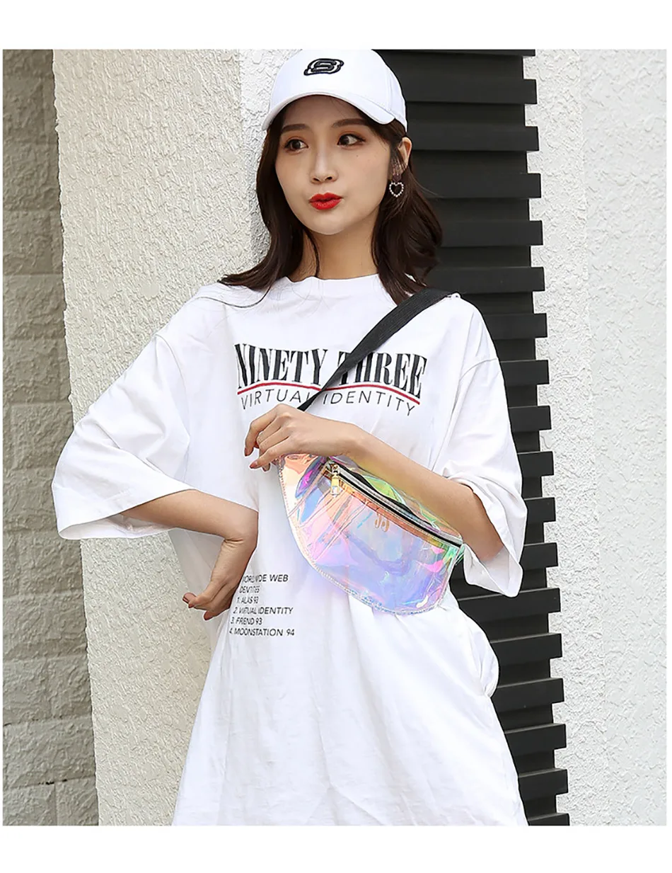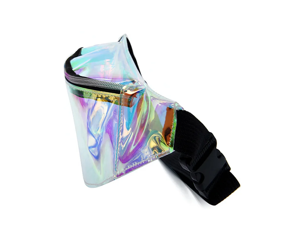 Голографическая полупрозрачная поясная сумка Поясная сумка имеет 1 карман на молнии Размеры: 32*14*8 см, ремень для ожидания подходит максимум 120 см Материал: водонепроницаемый ТПУ