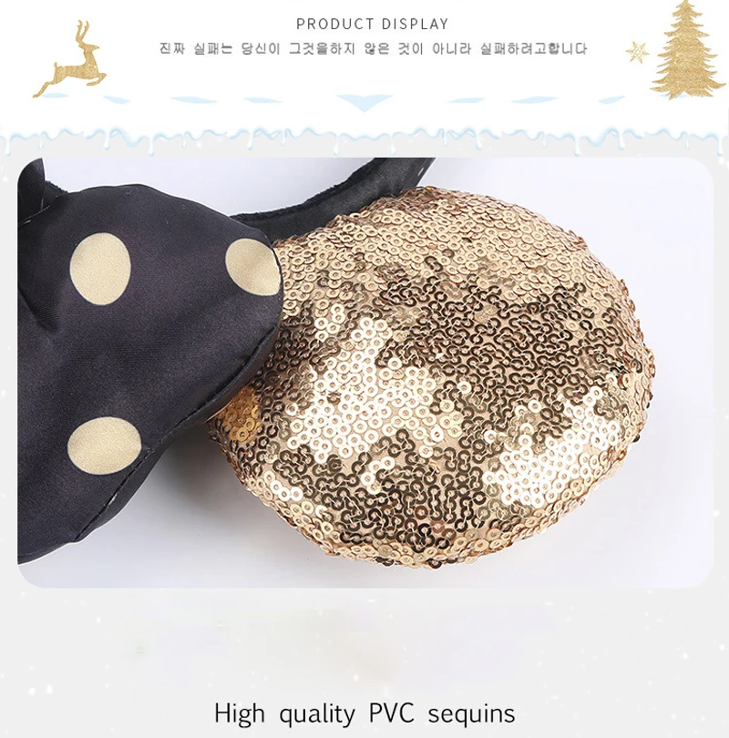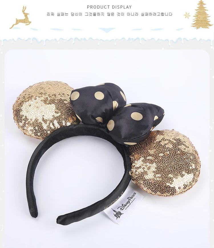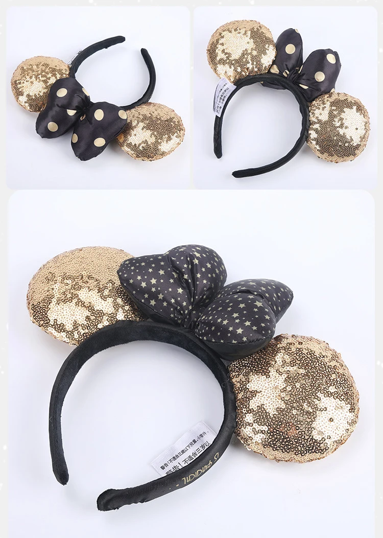Обруч Микки Темная ночь с золотыми блестками; С оборками повязка на голову "Минни" блесток ушками; Повязка для костюма Косплэй плюшевые игрушки для взрослых для детей; Подарок для детей
