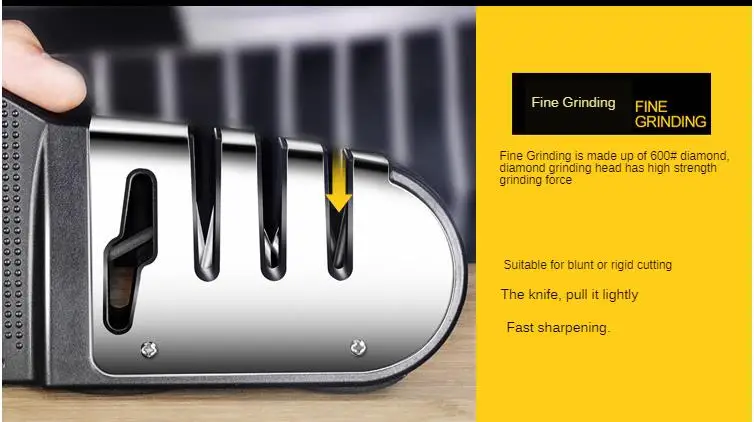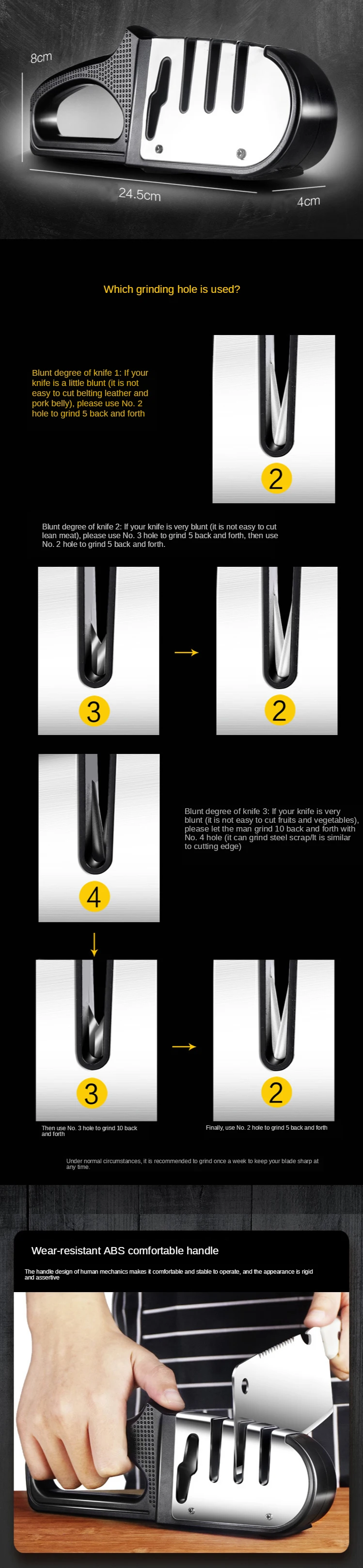 Стиль 1 Особенности: Эта точилка для ножей отлично подходит для всех типов ножей. Держите ножи острыми и готовыми к использованию. Он очень прост в использовании, очень прочный и долговечный. Материал: ABS + слот из нержавеющей стали 4 этапа материал слота: Керамика + Вольфрамовая сталь + бриллиант Способ применения 1. Для ножниц: Используйте этап 1, открыв ножницы и вставив их в слот. Устойчиво удерживайте точилку и точилку в течение 5-7 раз. 2. Для стальных ножей: Поместите нож на этап 2 и затачивайте 3-5 раз только к вам. Повторите на этапе 3 и 4 для более определенной отделки. Пожалуйста, свяжитесь с нами Пожалуйста, свяжитесь с нами, если у вас есть какие-либо вопросы или вам нужна дополнительная помощь. Мы более чем рады помочь нашим клиентам. 1-(алмазные абразивы) для ножниц 2-грубые (карбидные лезвия) для тупых ножей 3-Средние (алмазные абразивы) для ежедневного использования 4-Fine (стержни Creaminc) для ножей, требующих полировки Эргономичная силиконовая ручка и Нескользящая основа обеспечивают превосходное удобное сцепление и безопасность при заточке всех кухонных ножей и ножниц. Он достаточно большой, чтобы правильно и достаточно мал, чтобы поместиться в любой кухонный ящик.