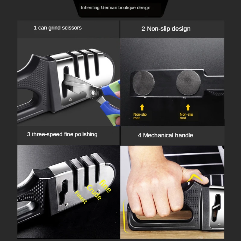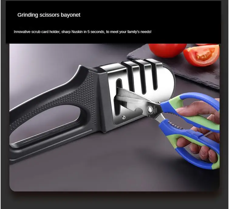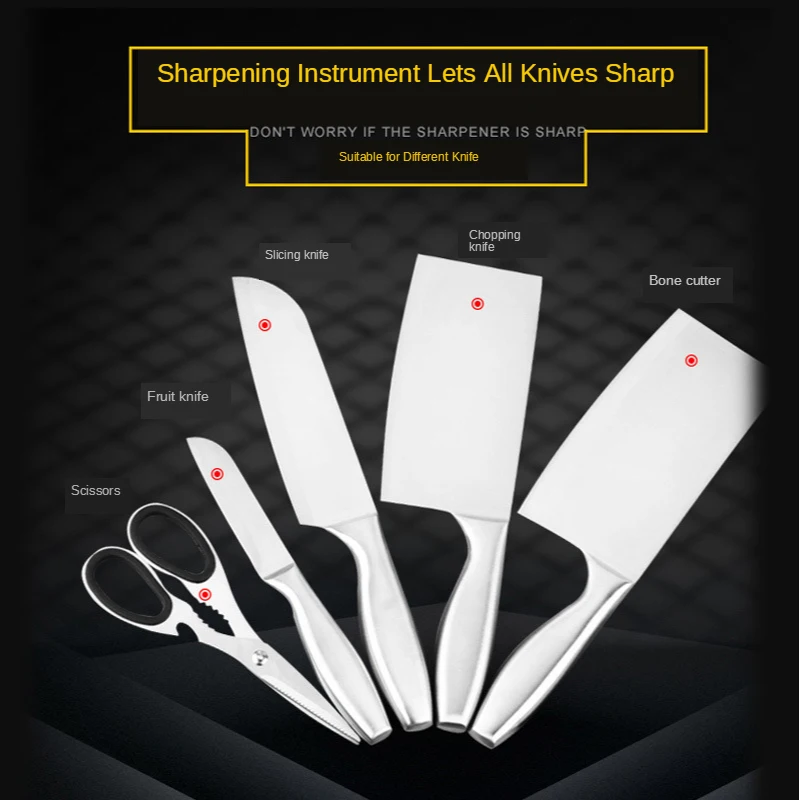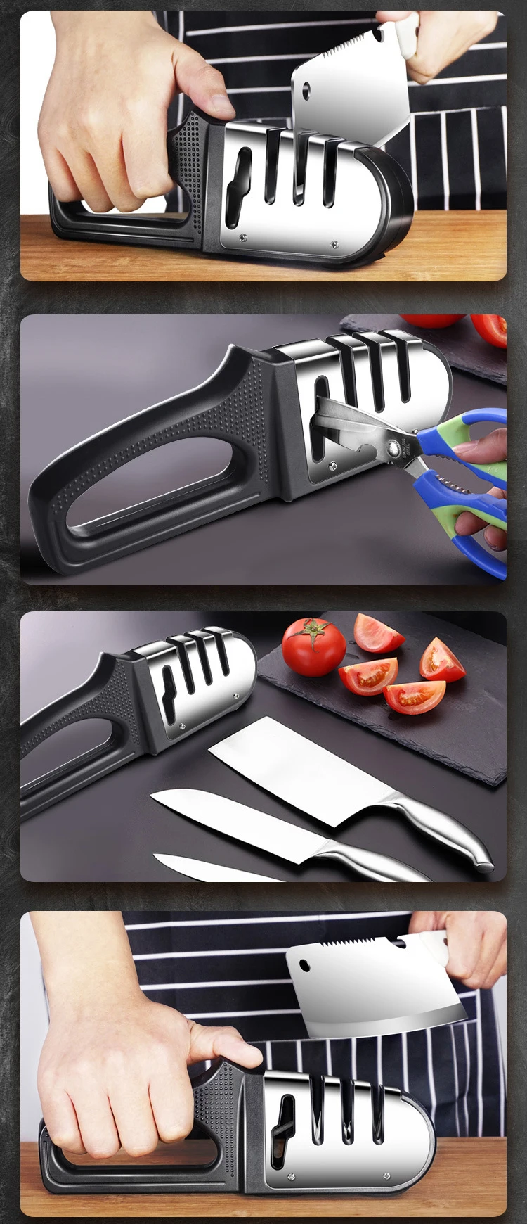 Точилка для ножей 4 в 1 с алмазным покрытием и тонким стержнем, ножницы и ножницы для заточки каменной системы, лезвия из нержавеющей стали
