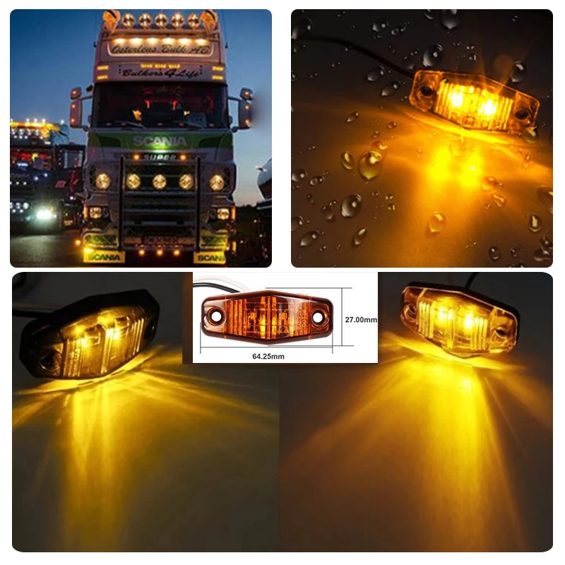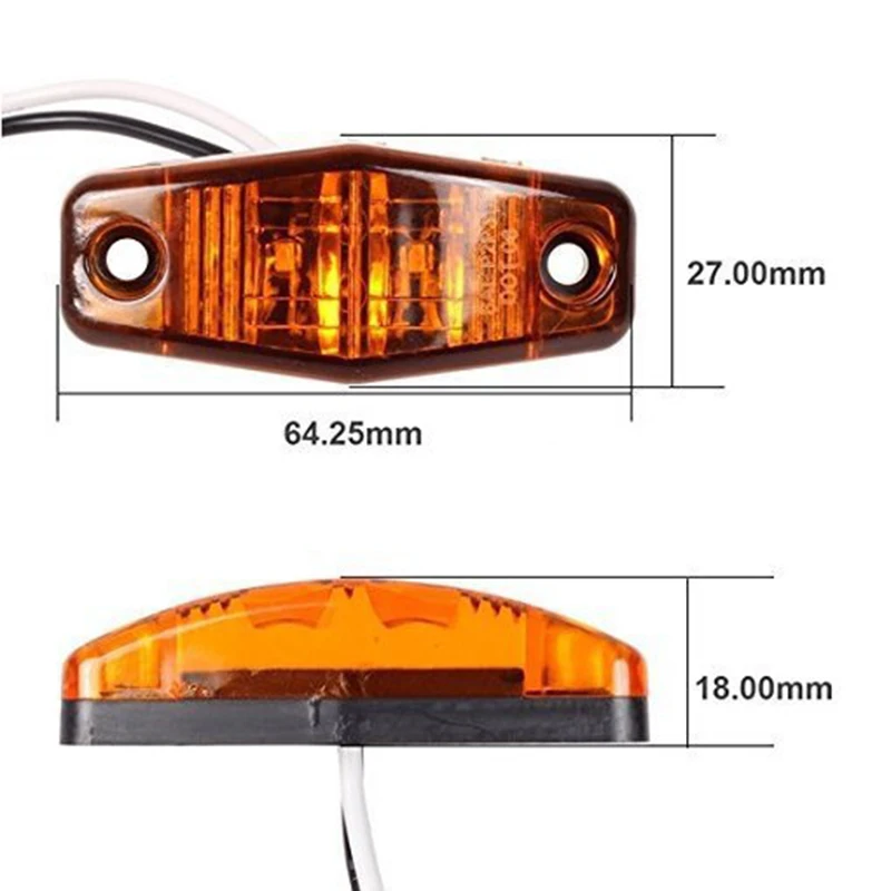 10-30 в, 12 В, 24 В постоянного тока, светодиодные, боковые, габаритные фонари 2 шт. светодиодный Желтый светодиод боковые габаритные огни Функция: зазор лампы, боковые огни маркировки, идентификационные лампы и т. Д. Длительный срок службы до 300000 часов Объектив и корпус из поликарбоната ультразвуковой сварки для обеспечения постоянного и водонепроницаемого уплотнения Универсальный для наружного использования.