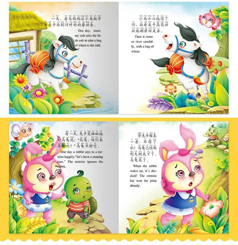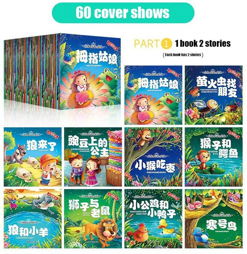 60 книг, Классическая сказочная книга для родителей и детей, для детей, для сна, английский, китайский, пиньинь, мандарин, возраст от 0 до 6 лет