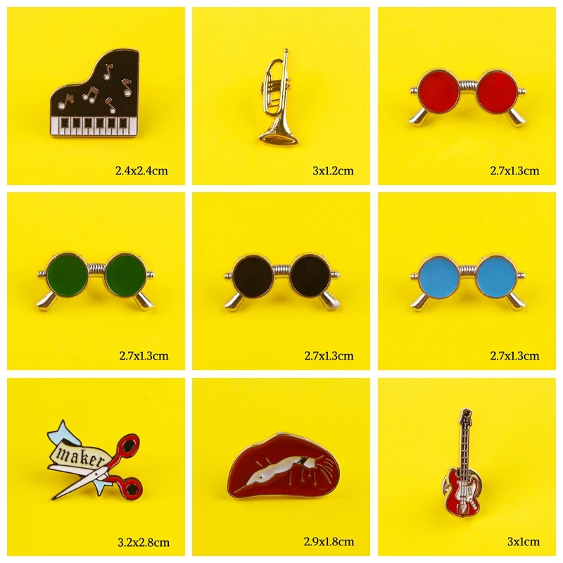 Ретро круглые очки эмаль значки на одежде джинсы Скрипка Гитара пианино нагрудный знак брошь значок ювелирные изделия подарки для друзей