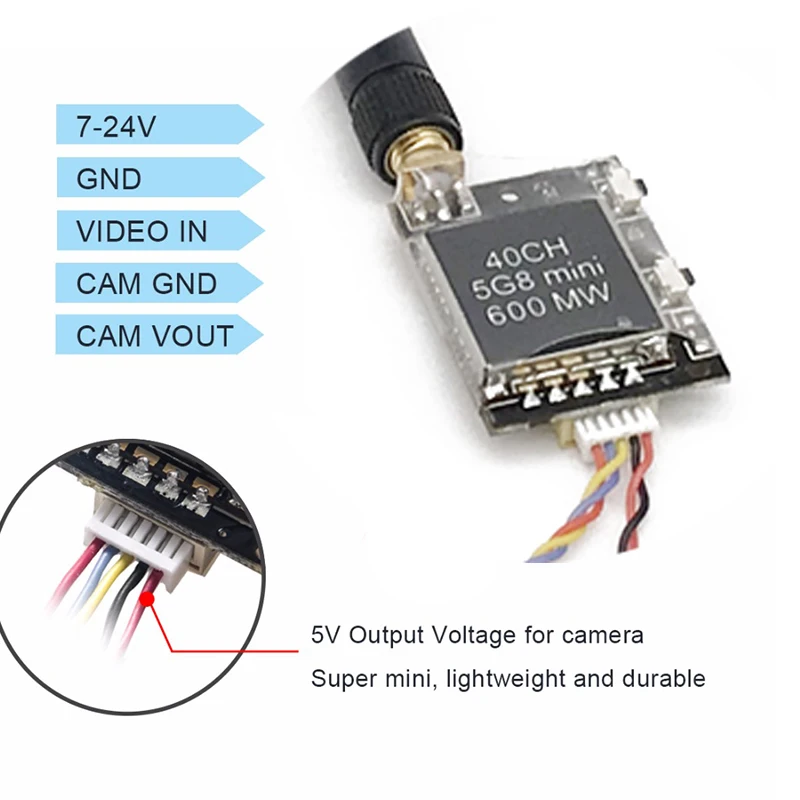 Этот передатчик FPV 5,8 GHz 40CH имеет двойные кнопки для легкого изменения CH и FR.