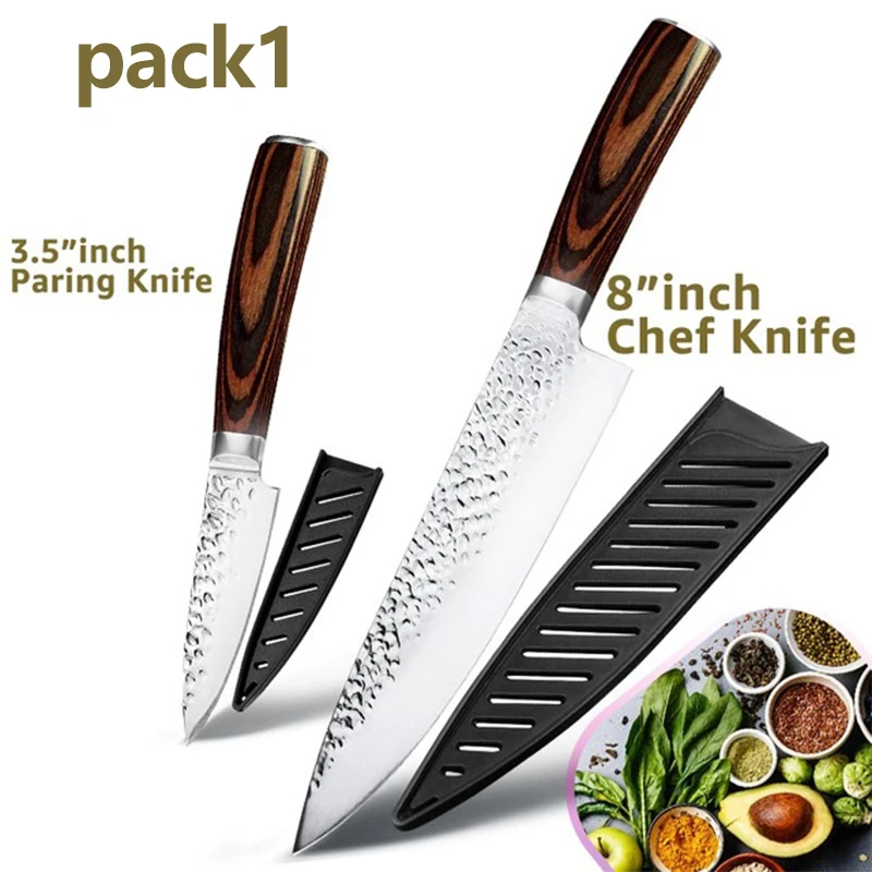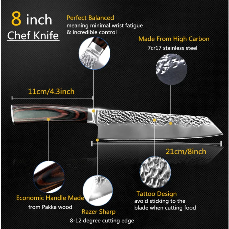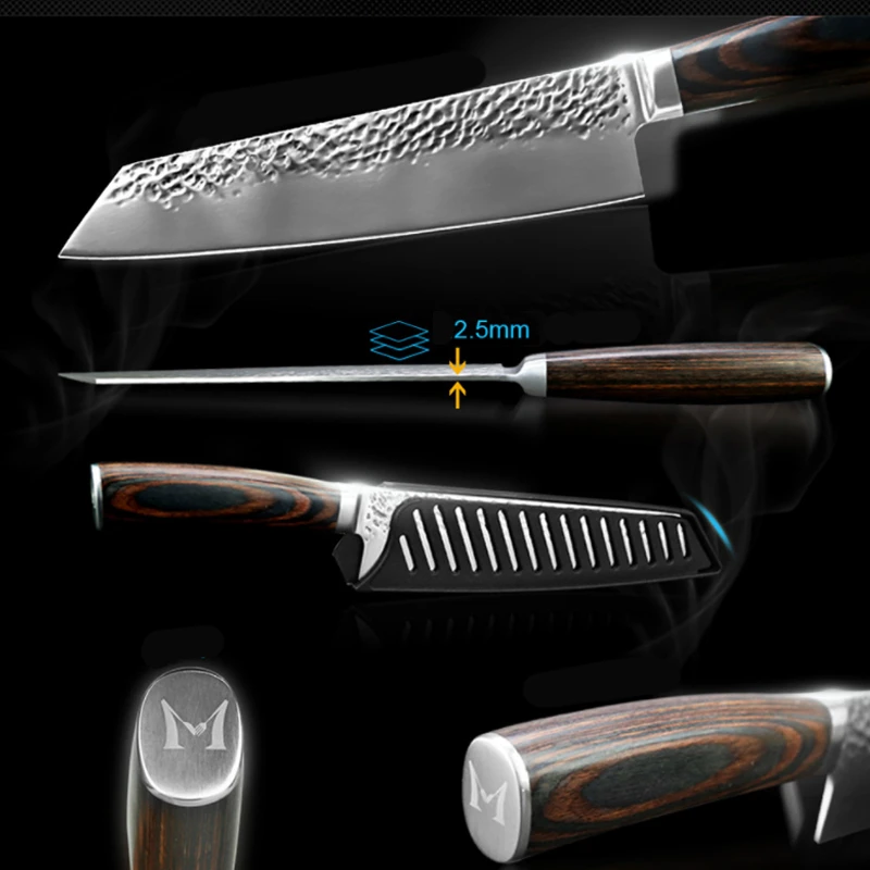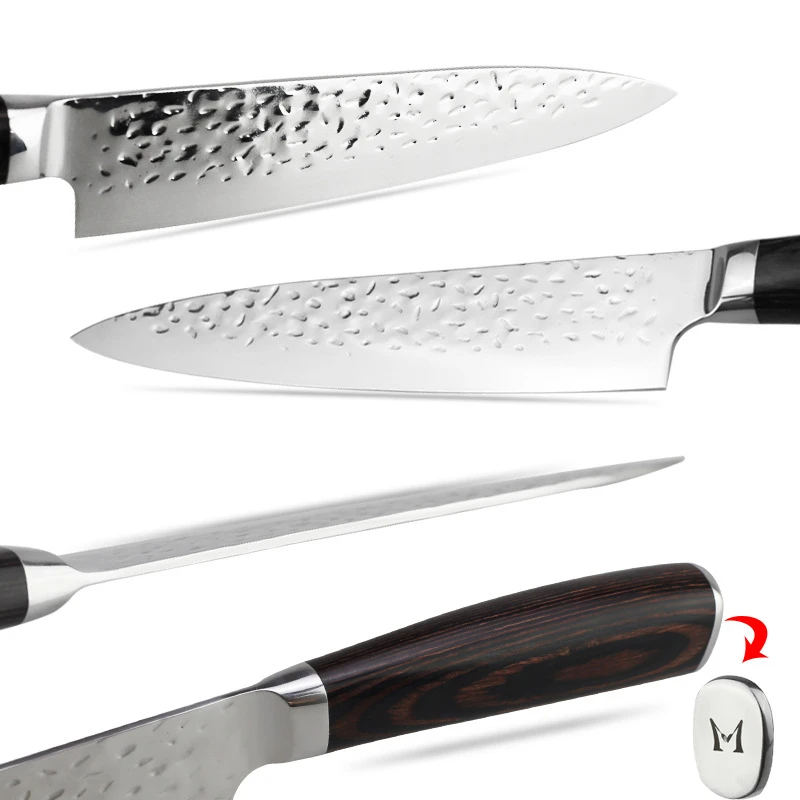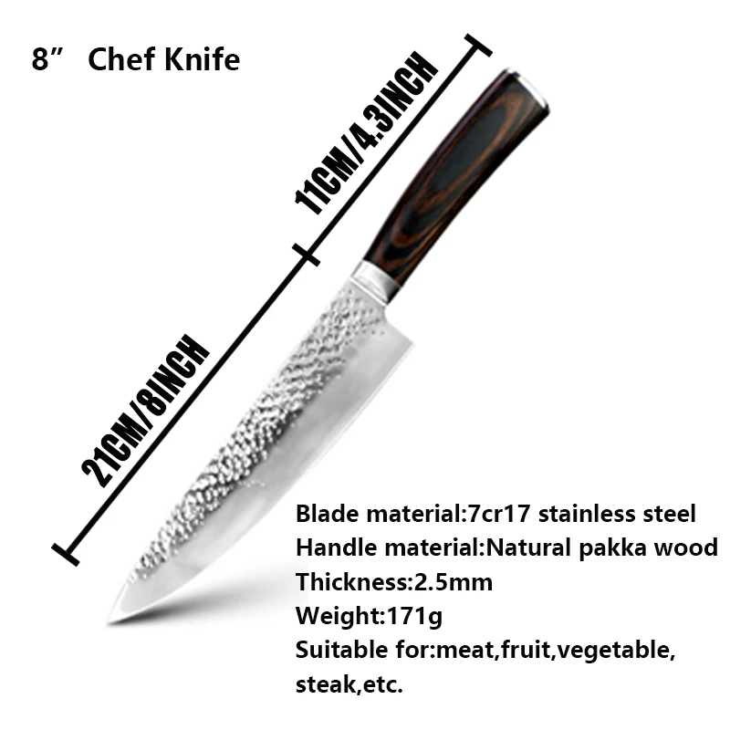 Высокое качество: Изготовлен из высококачественной нержавеющей стали, нож прочный, meawhy, молотковая текстура лезвия устраняет трение и держит еду от прилипания к лезвию.