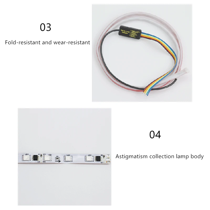 5050 симфония, передняя светящаяся симфония + красный + желтый + белый (режим светофора автоматически изменяется, красный мигает три раза и продолжает светить для тормоза, желтый светильник для поворота влево и вправо, белый светильник для заднего хода)