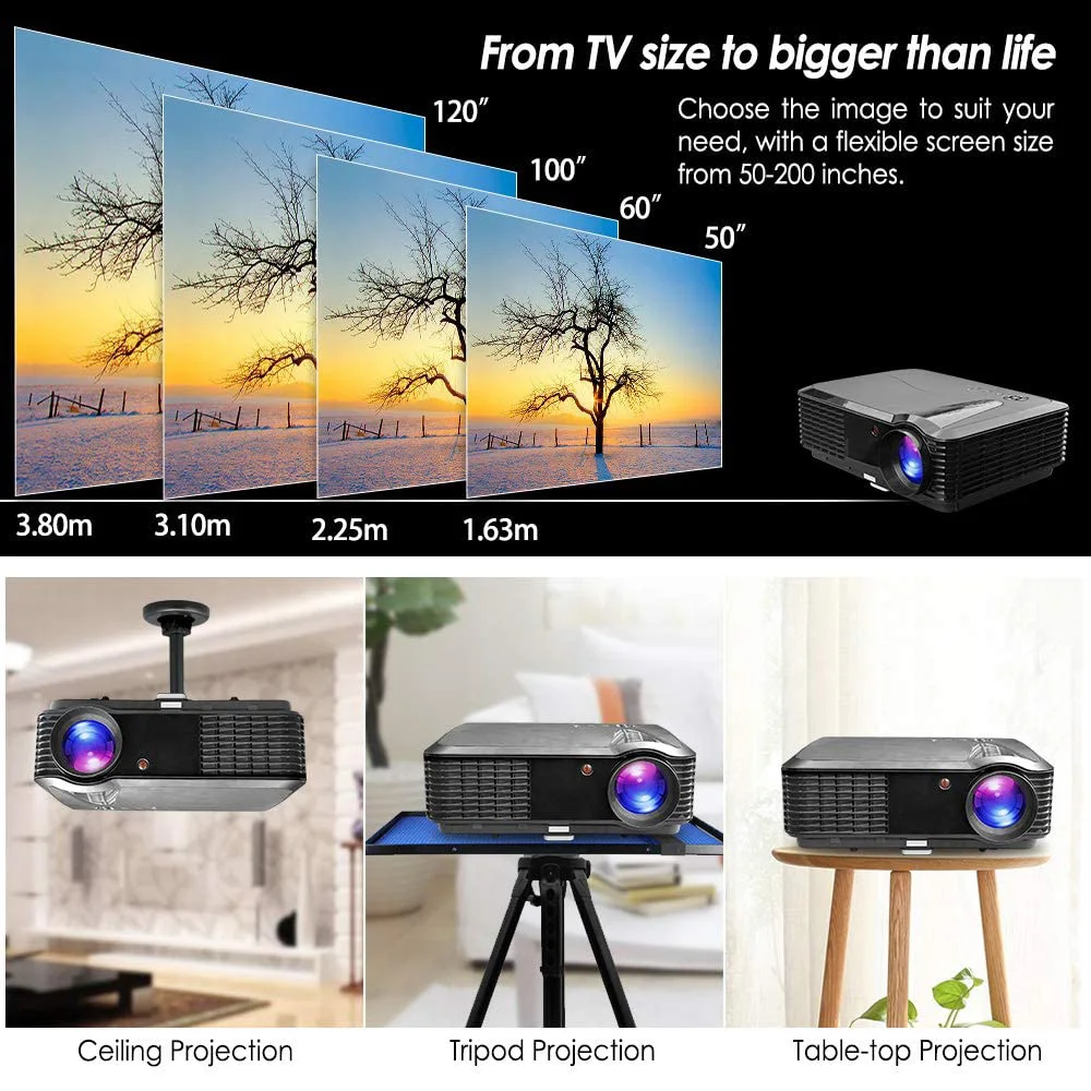 Этот проектор с размером изображения около 50 ~ 200 "на расстоянии проекции 6,56-16,4 футов и соотношением сторон изображения 16:9/4:3. Более того, вертикальная коррекция keystone на ± 15 ° сохраняет изображение в прямоугольнике без наклона. Для удовлетворения ваших потребностей в идеальном просмотре, вы можете изменить размер изображения от 100% до 75% с помощью пульта дистанционного управления.