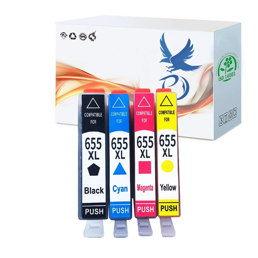 Свойства продукта: 655 XL заправленный чернильный картридж Для количества: 1 комплект (BK/C/Y/M) Подходит для: Европы, Ближнего Востока Емкость: BK-22.5ml C/Y/M-16ml Применимые модели: Совместим с Deskjet 3525 5525 4615 4625 4525 6520 6525 6625 Принтер