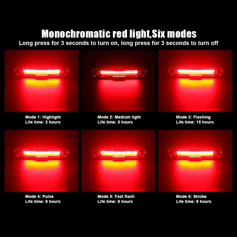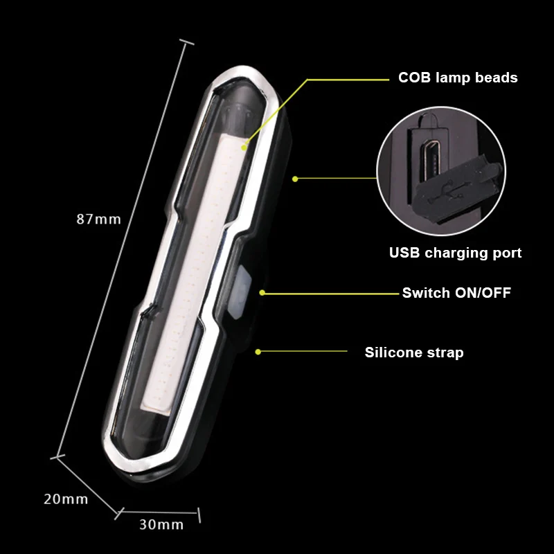 2.USB Перезаряжаемые:Велосипедный задний светильник заряжается от компьютера или любых устройств с usb-портом. Для полной зарядки требуется всего 2 часа.