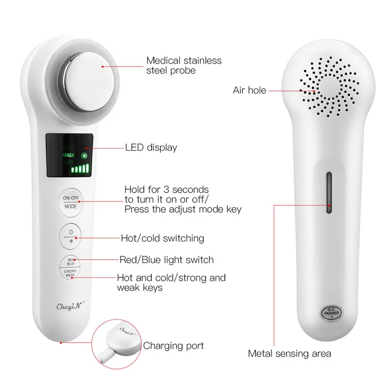 1. 4 режима: очистка, увлажнение, маска, Подтяжка 2. Горячий и холодный компресс: Горячий режим 38-42C, помогает открыть поры, способствует циркуляции крови, полностью поглощает питательные вещества и пробудит цитатность кожи. Кодовый режим 6-10C, сужает поры, блокирует нюхание и увлажнение кожи, успокаивает отек, укрепляет контур, делает кожу нежной и упругой. 3. Красный и синий свет: способствует поглощению питательных веществ, восстанавливает кожу, отбеливает кожу, разглаживает морщины, активирует коллаген, контролирует масло и акне 4. EMS ультразвуковая вибрация, импорт и экспорт ионов, успокаивает мышцы и массаж, и поглощает больше питательных веществ 5. Кнопочное управление, светодиодный большой экран дисплея, управление с первого взгляда