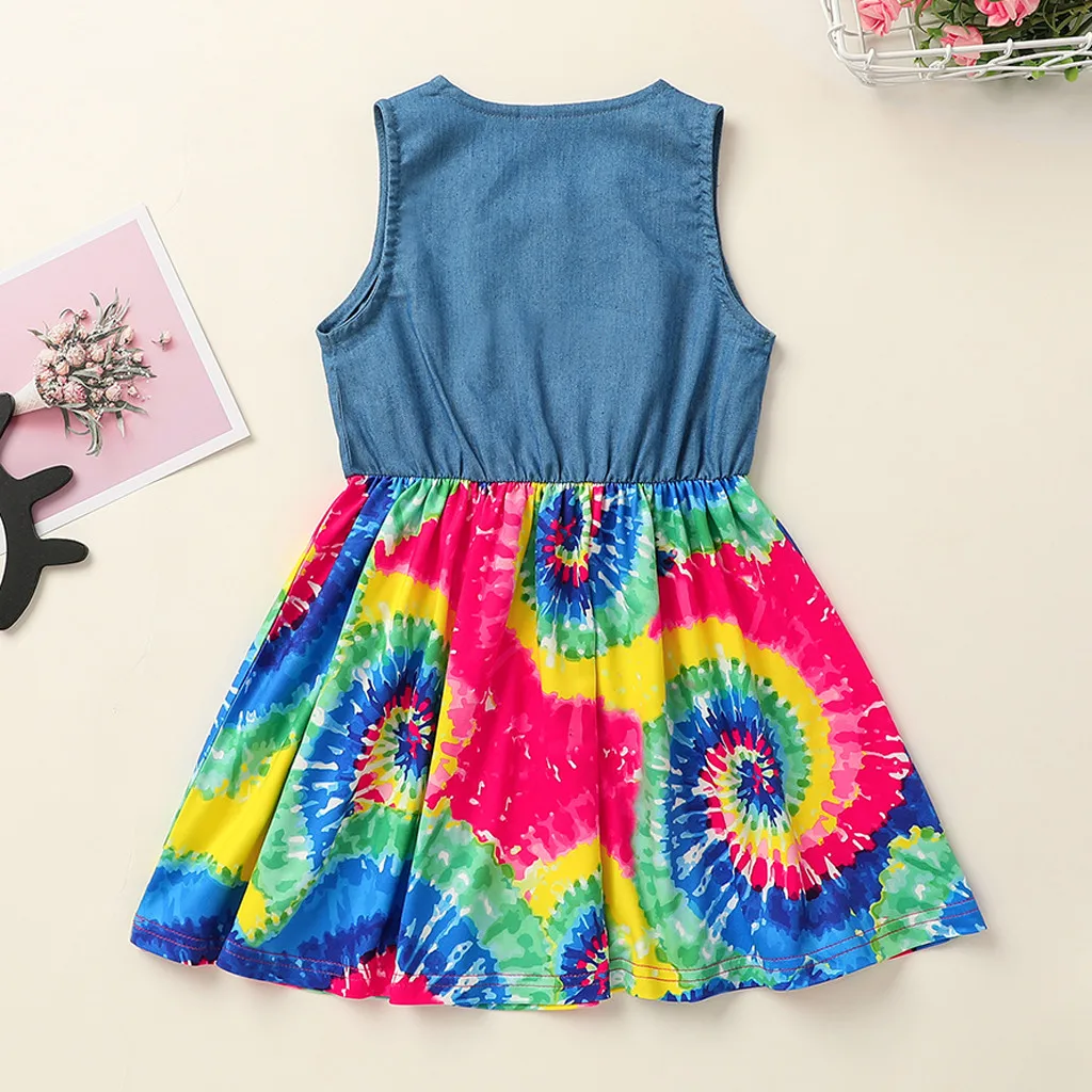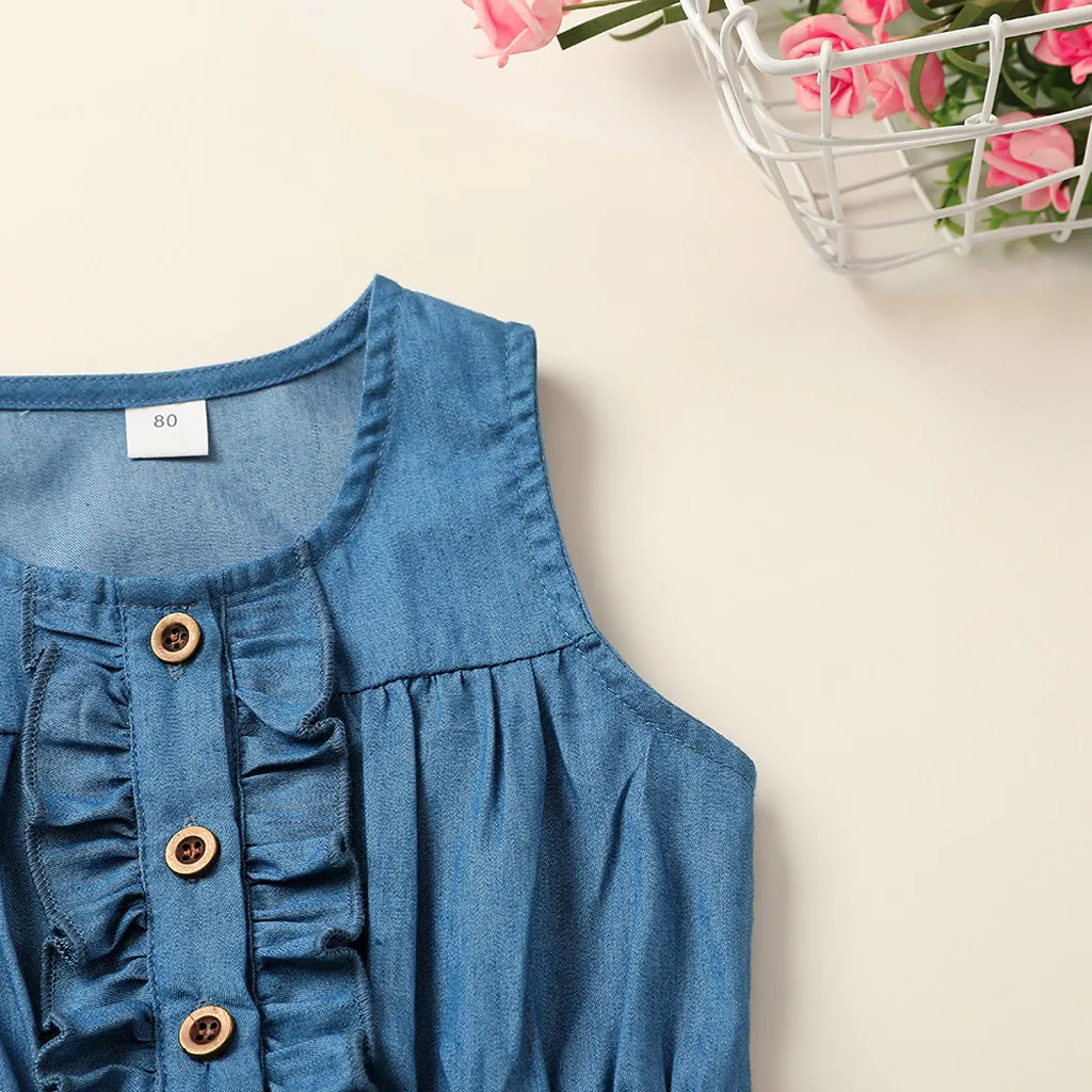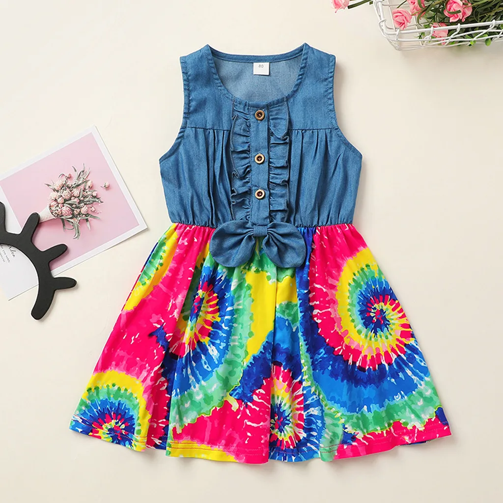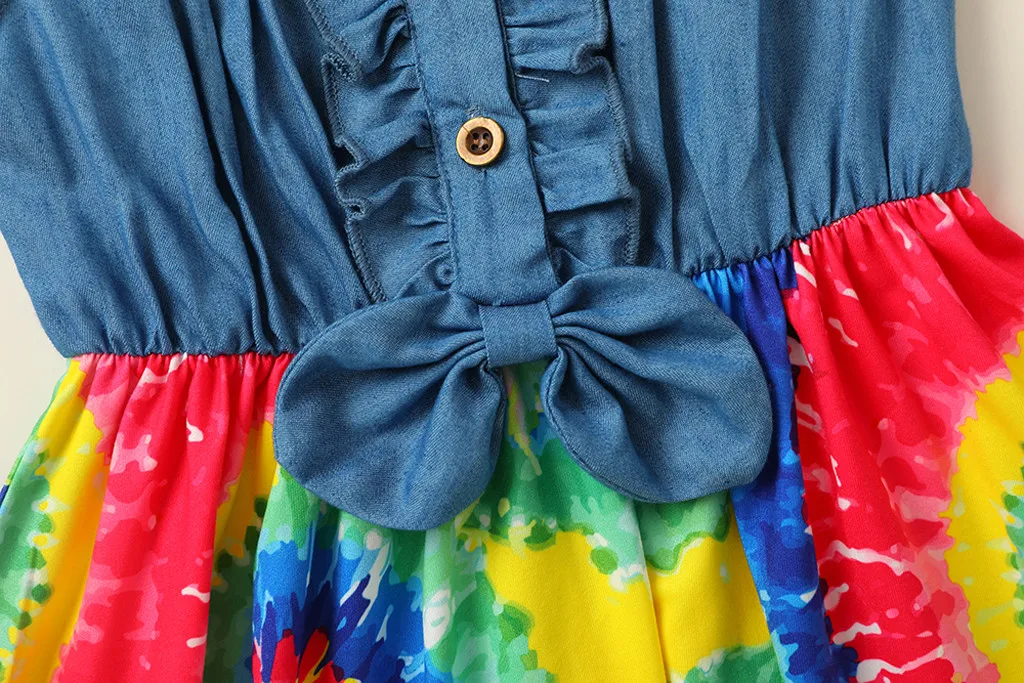 Платье принцессы из джинсовой ткани с оборками и бантом для маленьких девочек