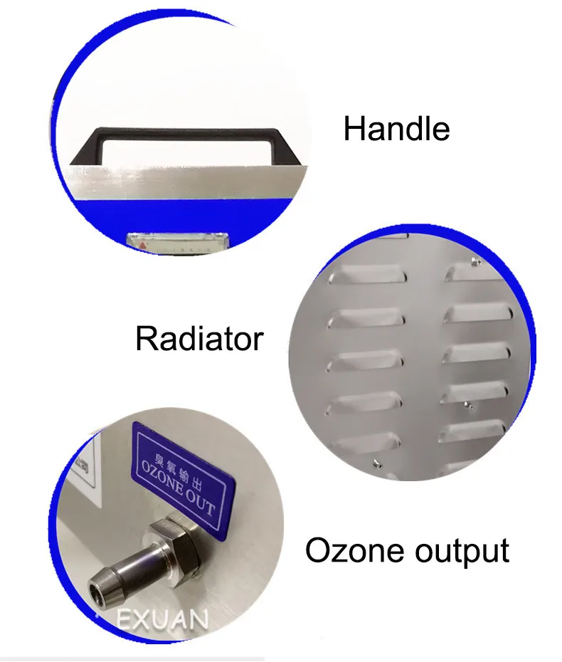 Название продукта: машина для дезинфекции озона Модель: QD-D7A Выход озона: 7 Гц/ч Размер изделия: 330*260*550 мм Источник питания: 220В/50Гц Номинальная мощность: 160 Вт