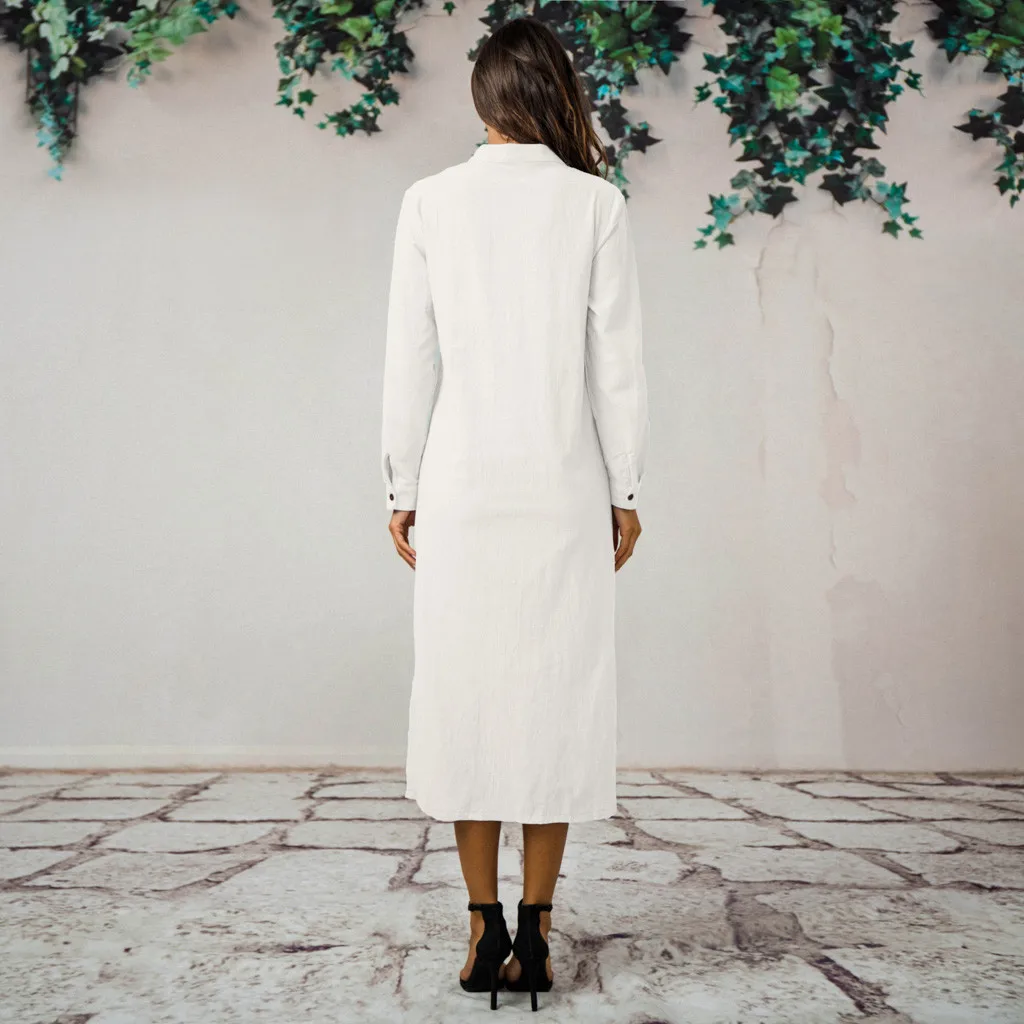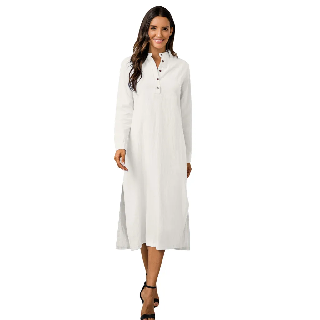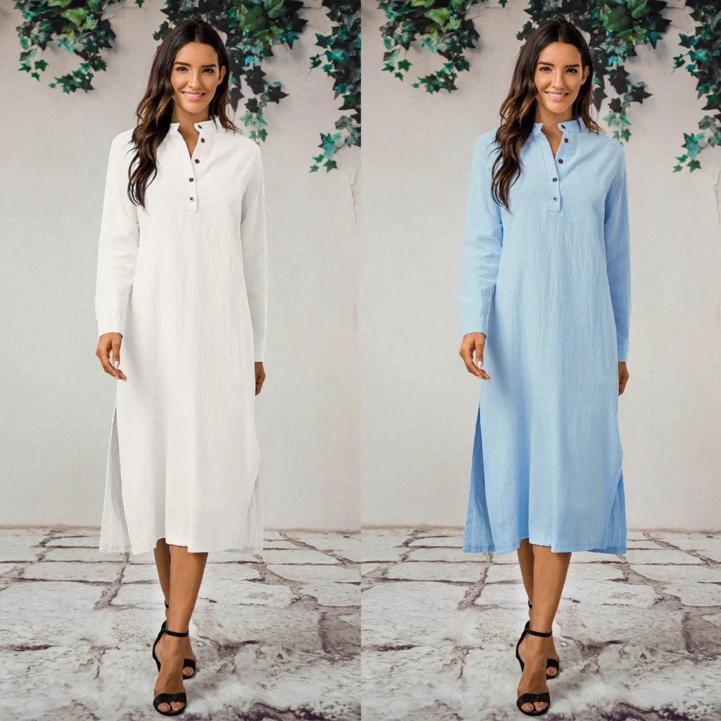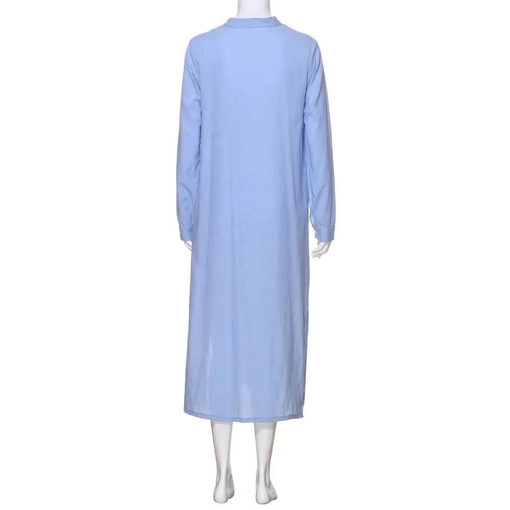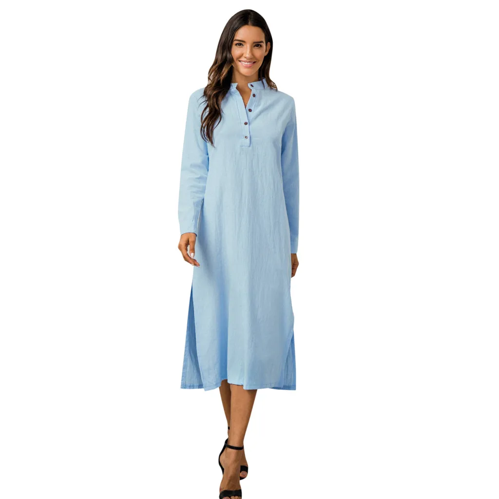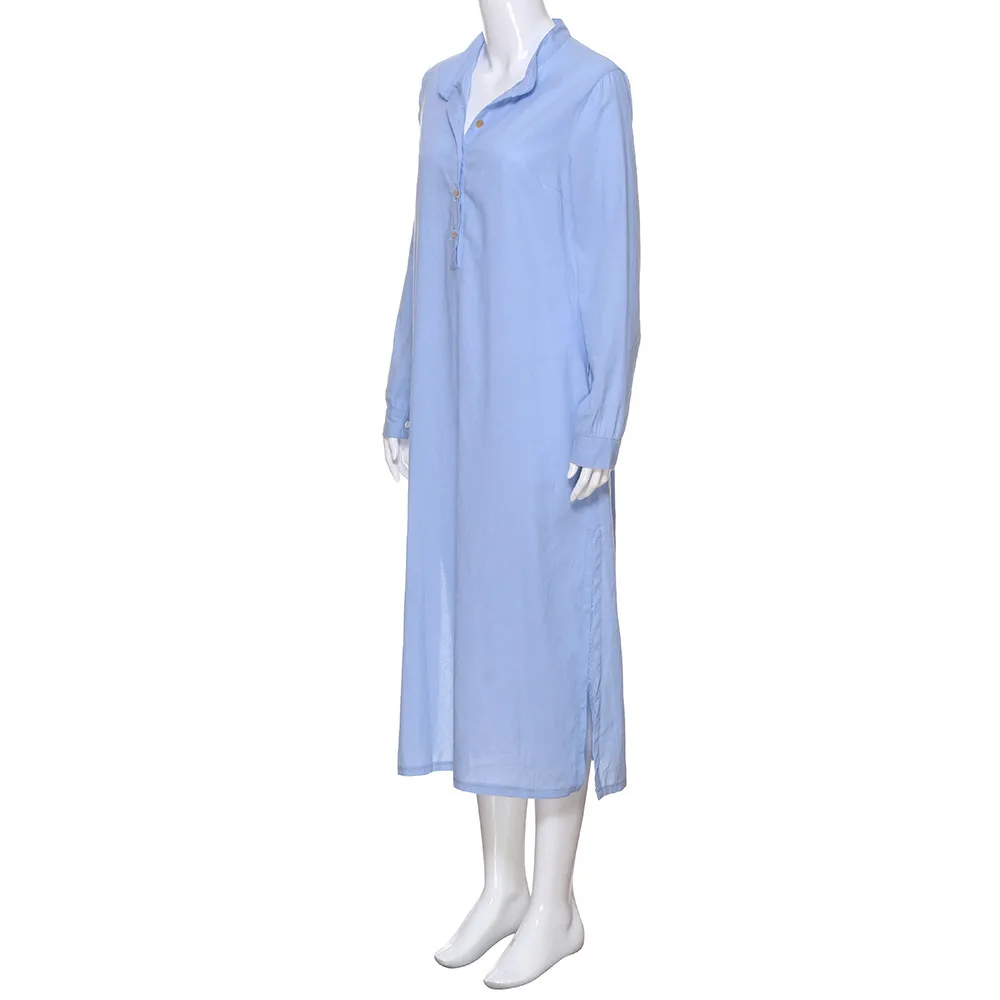 Женское длинное платье-рубашка из хлопка с длинным рукавом