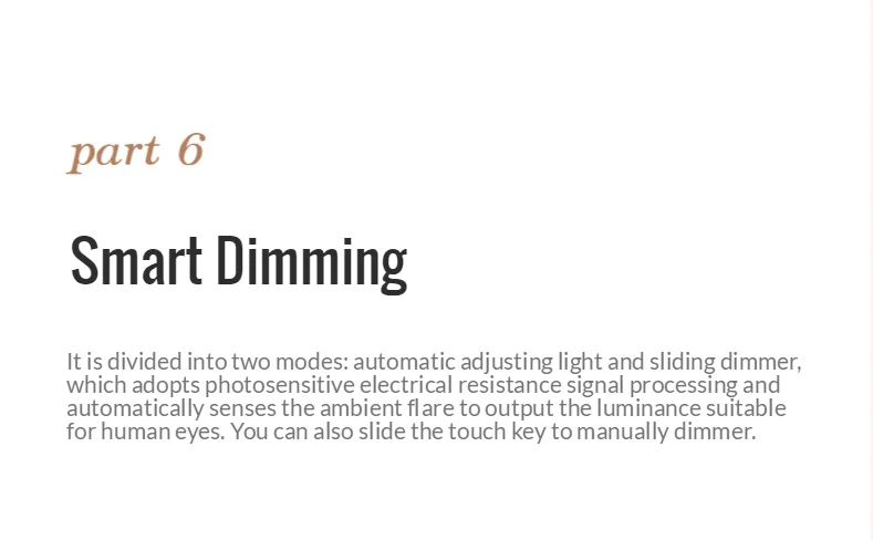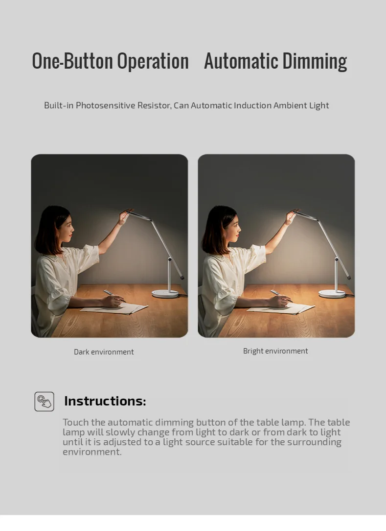 4. Умное затемнение: управление одной кнопкой. Встроенный фоточувствительный резистор, может автоматический индукционный окружающий светильник