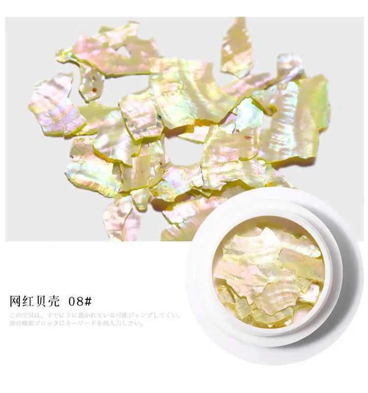 Название: украшение для ногтей с фрагментами ракушек Материал: оболочка Цвет как показано Использование: используется для украшения ногтей, профессионального маникюрного салона и т. д. Упаковка: коробка Количество: 1 коробка Вес брутто: 10 г Идея: изображение только для справки, фактический продукт имеет преимущественную силу