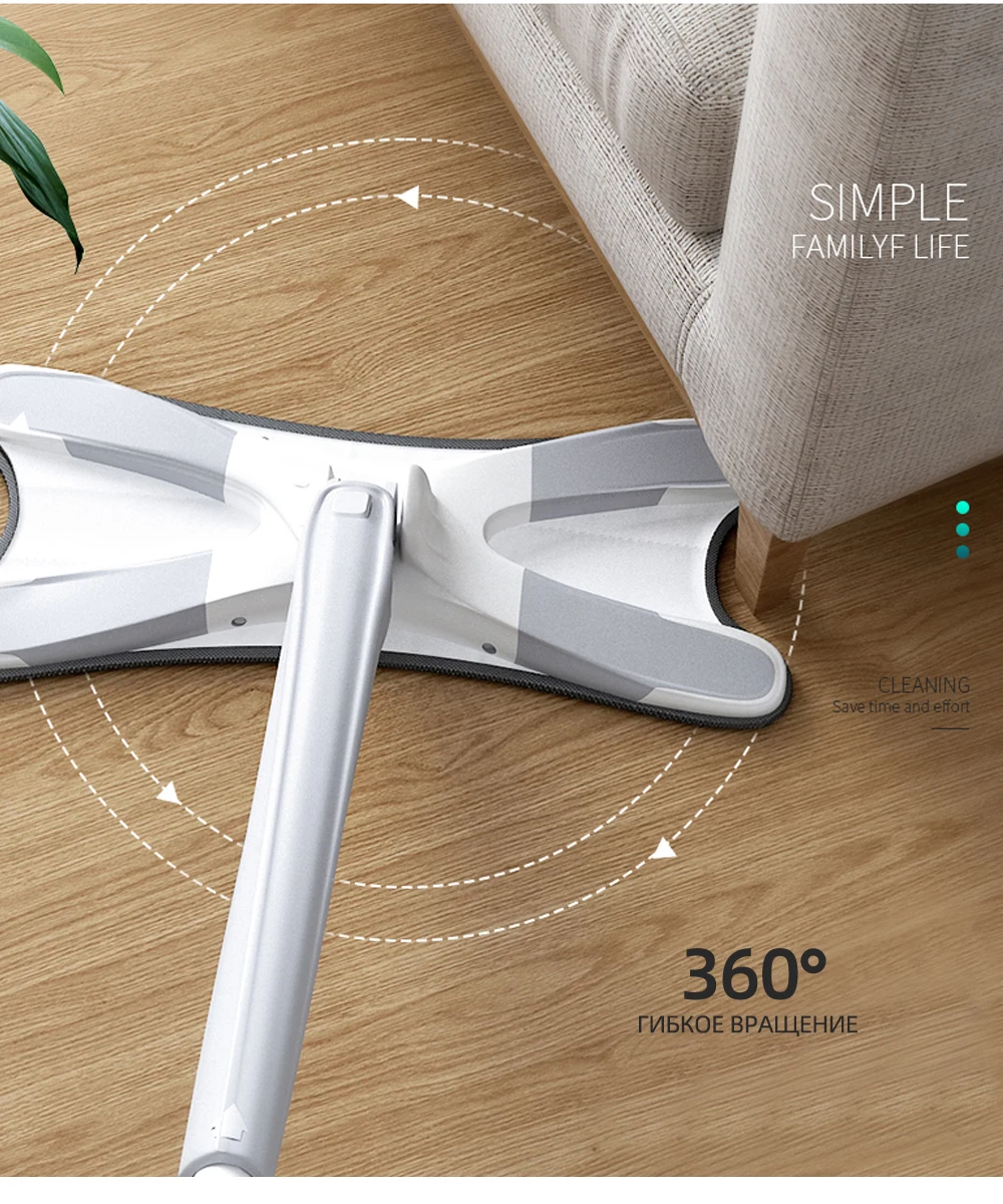 Vadrouille mains libres: Avec un corps mince et une tête de vadrouille en forme de X, notre vadrouille créative est dotée d'un système d'essorage automatique mains libres qui imite le mouvement d'essorage manuel et protège vos mains de l'eau sale. En poussant simplement la barre vers le bas, vous pouvez essorer l'eau et la saleté en quelques secondes, et le lavage et le séchage sont terminés en même temps.