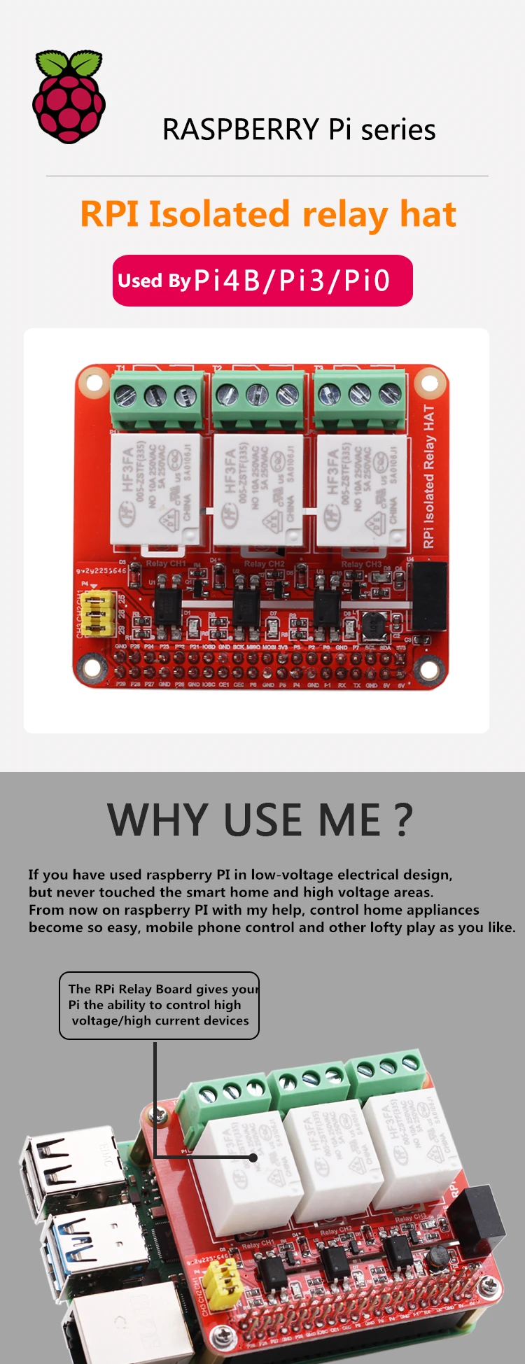Плата реле RPi дает возможность вашему Pi контролировать устройства высокого напряжения/высокотоковые, легко делает обычную бытовую технику интеллектуальной. Особенности платы реле RPi • Стандартный 40-контактный удлинитель Raspberry Pi GPIO, поддерживает платы серии Raspberry Pi • Высококачественные реле, нагрузка до 10 А 250 В переменного тока • Изоляция фотосцепления, предотвращение помех от высоковольтной цепи • Встроенные светодиоды для индикации состояния реле • Перемычка управления реле позволяет управлять реле с помощью Пользовательских контактов, отличных от контактов по умолчанию • Поставляется с ресурсами разработки, включая примеры wiringPi, WebioPi, shell, python и bcm2835 Пожалуйста, проверьте ссылку на Вики: //github.com/rcdrones/rpi_isolated_relay_hat