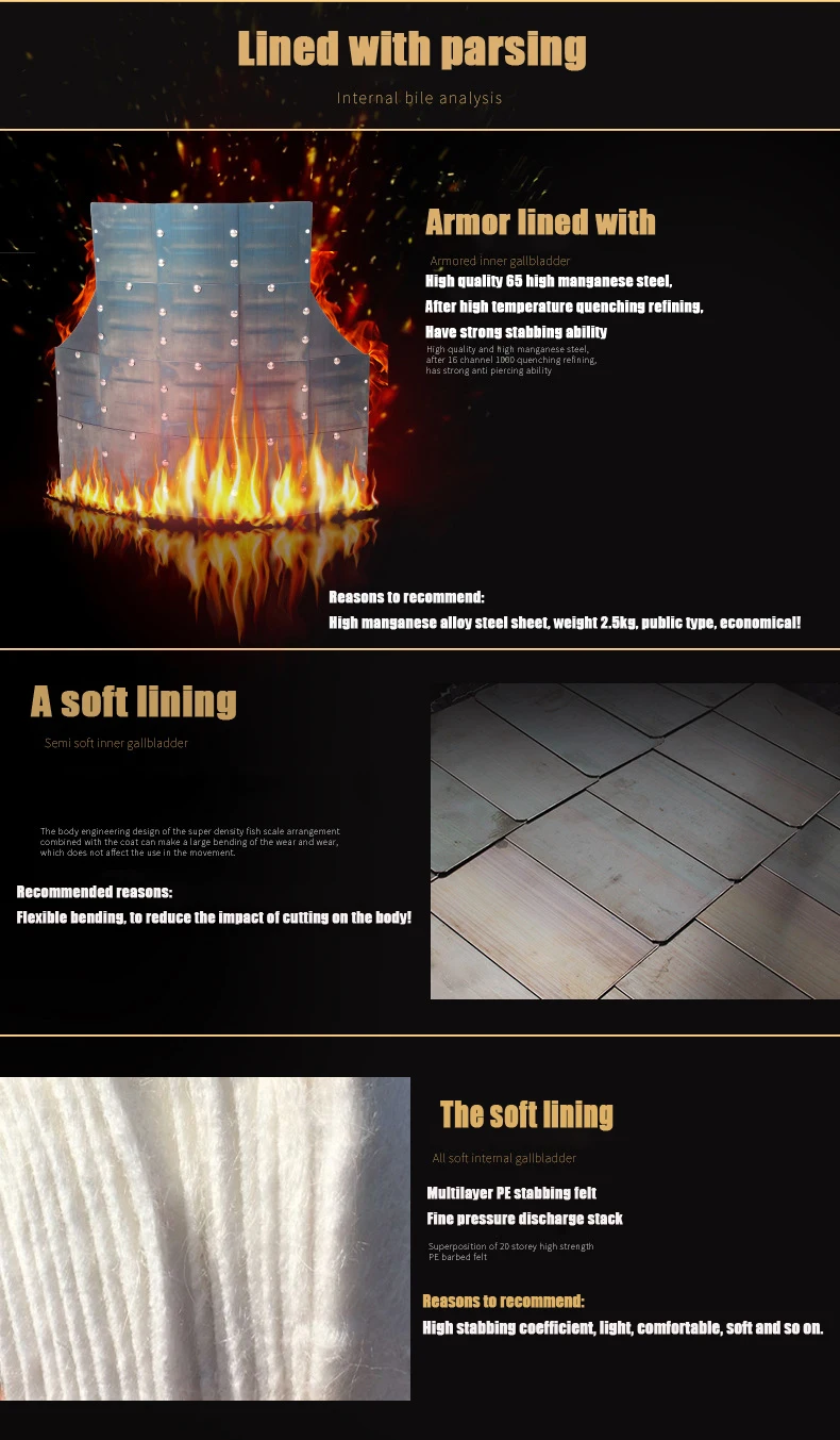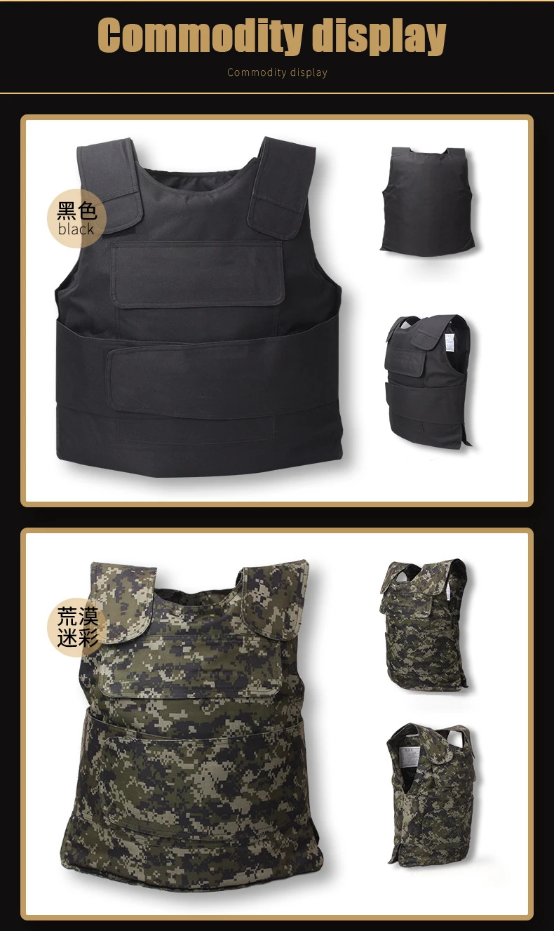 Подходящий Размер: средний размер можно отрегулировать, в соответствии с произвольной регулировкой корпуса Вес: около 2,3 кг Цвет: черный, пустынный камуфляж, камуфляж джунглей, морской Камуфляж Защитная площадь: 0,3 квадратных метров Уровень защиты: кинетическая энергия 24 joule, неоткрытый наконечник Область защиты от ударов: & LT; 2,8 кг/м2, однослойная плотность 184 г/м2 Вес, устойчивый к стиранию: 830 г/м2 (0,3 м2) Пользователи: Клиенты занимаются опасными операциями, такими как: охрана безопасности, ночные водители, правоохранительная команда чэньгуан и другие связанные отрасли. Он также может использоваться в качестве экстренного домашнего средства защиты.